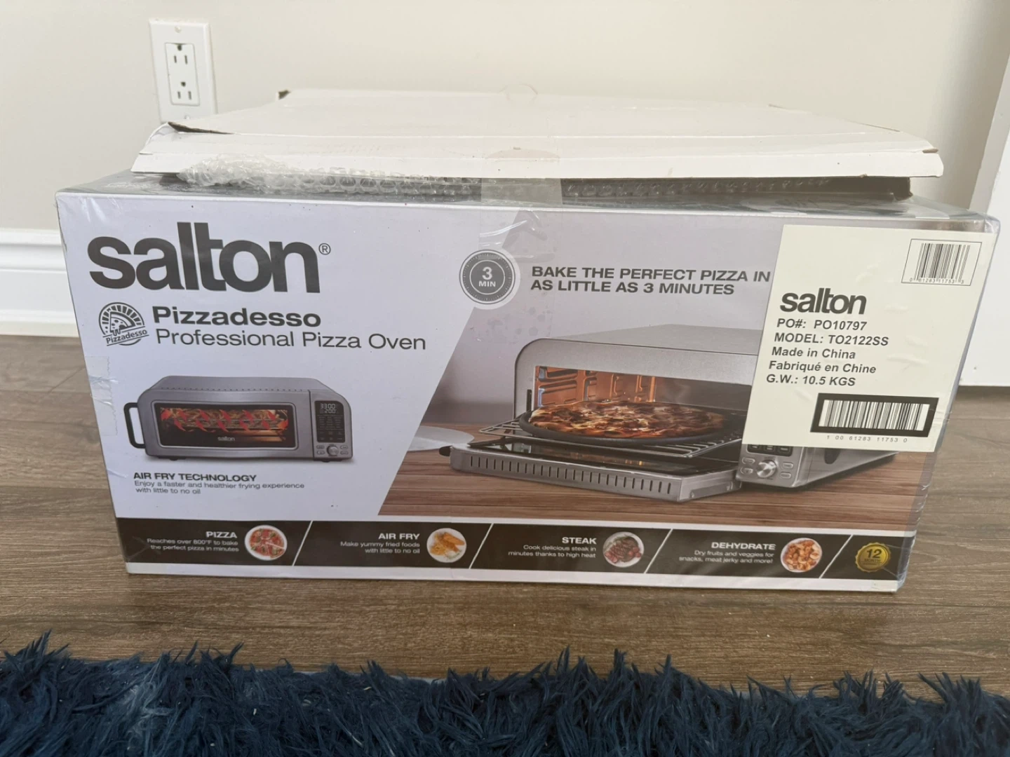 Selling a brand new Salton Pizzadesso Professional Pizza Oven, still in its original box! This oven can bake the perfect pizza in as little as 3 minutes. It also features air fry technology, allowing for a healthier frying experience with little to no oil. You can cook yummy fries, steak, and dehydrate food with this oven too!