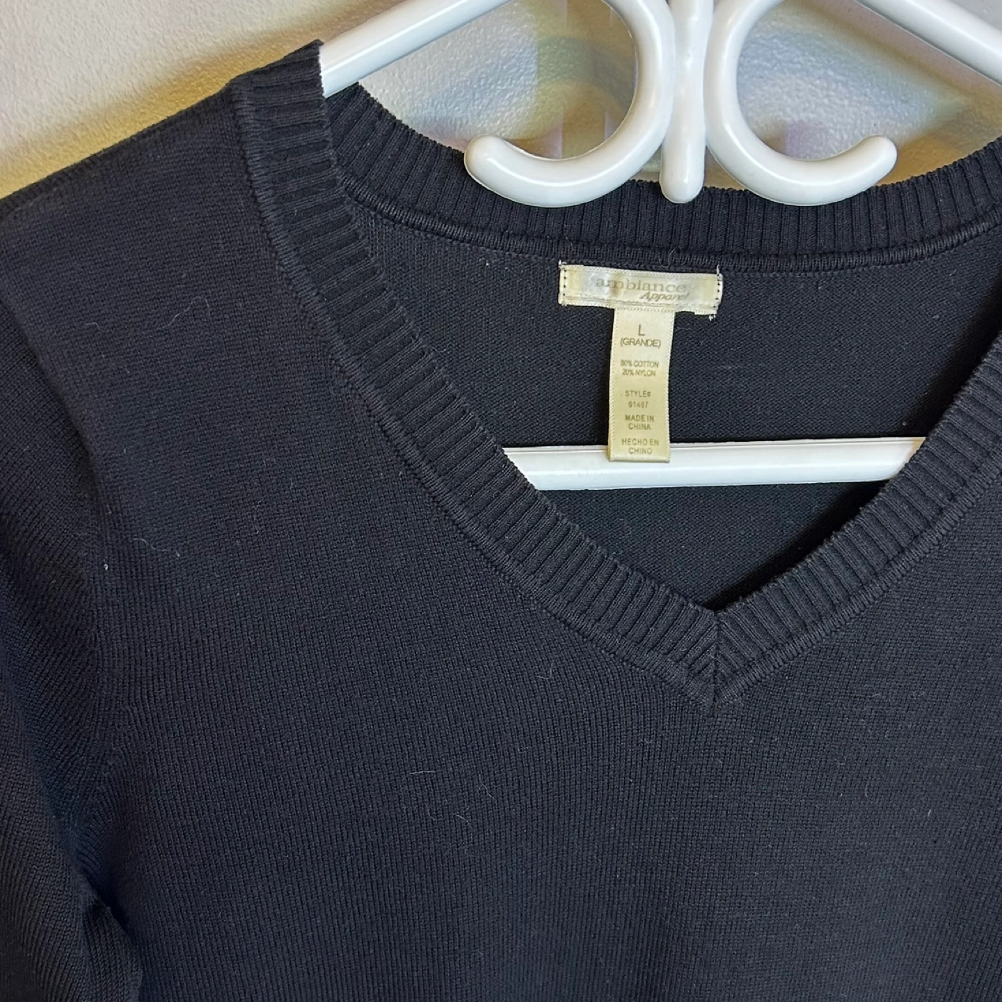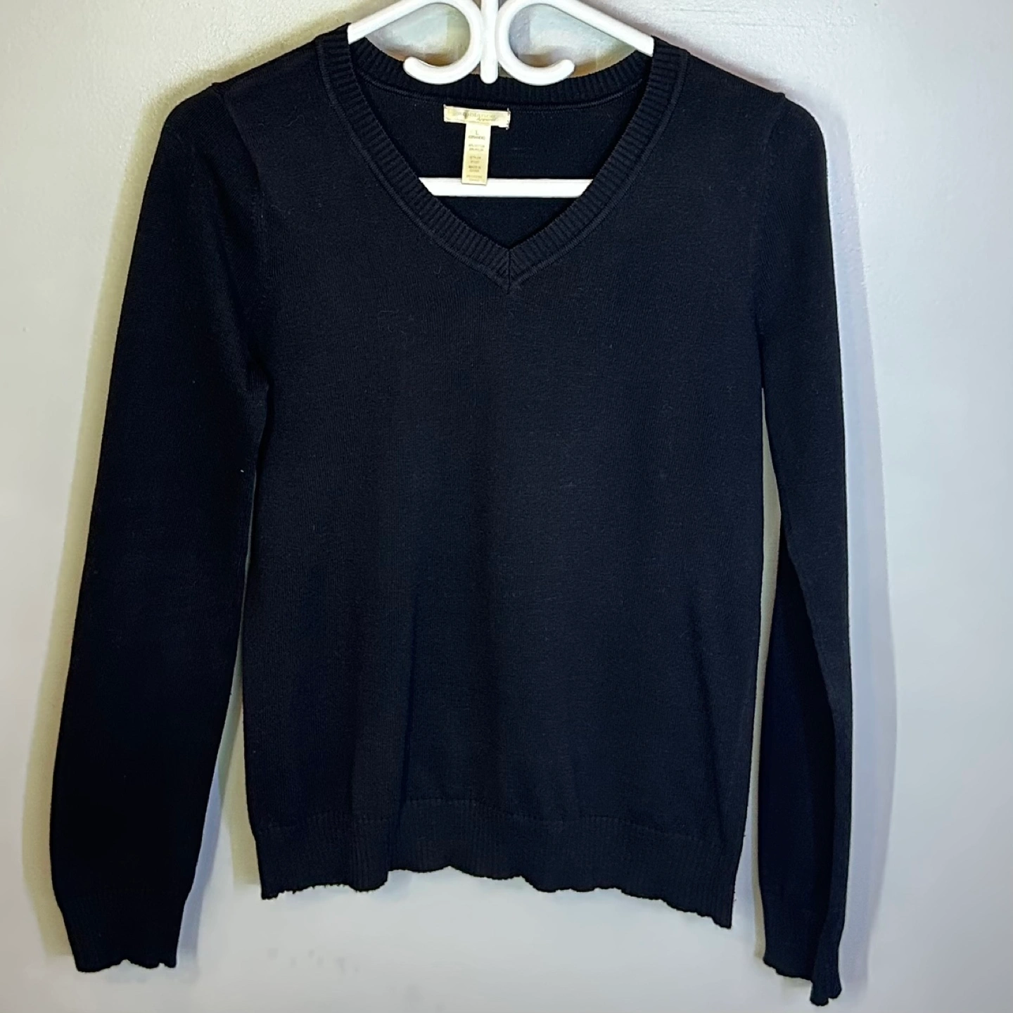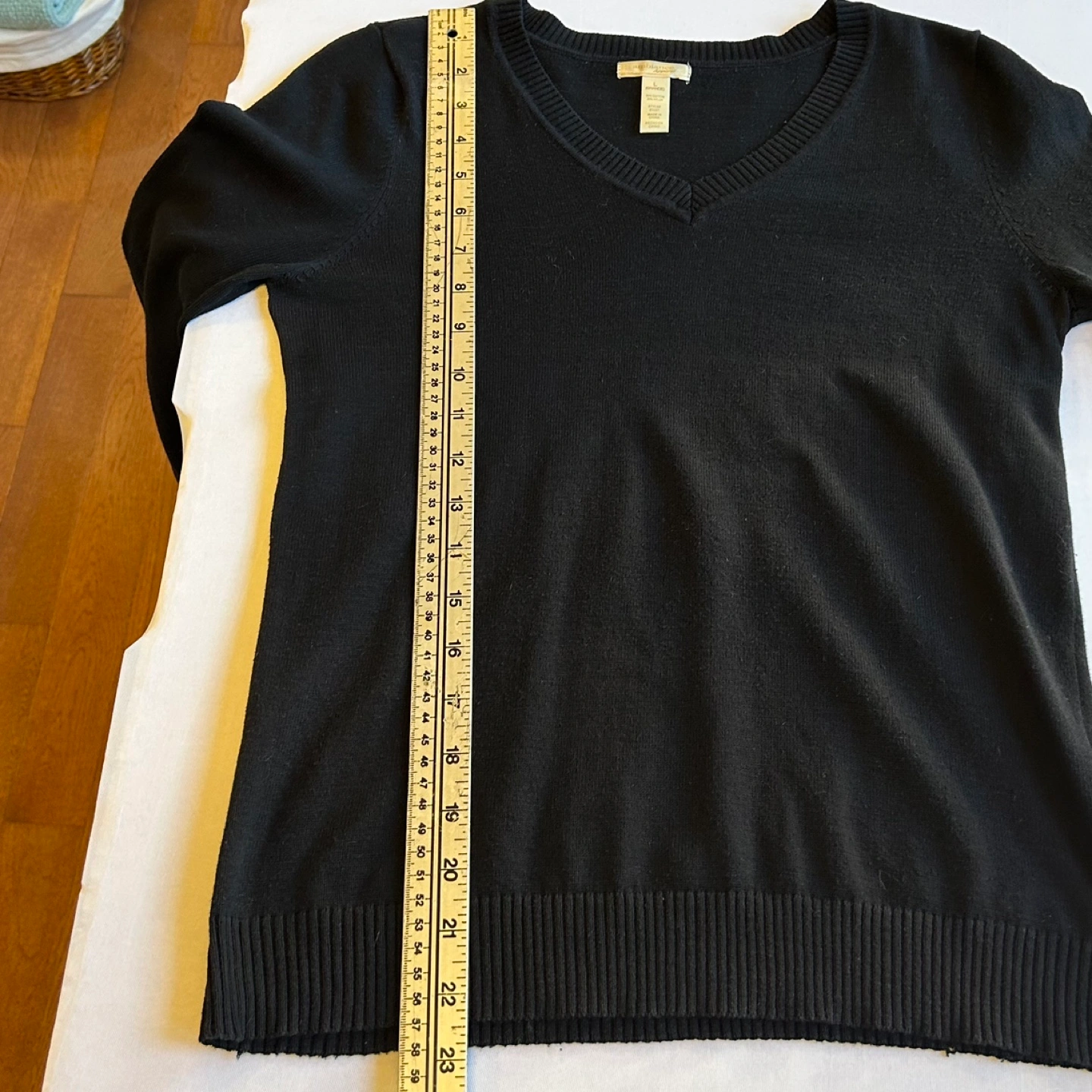 Ambiance Apparel Black V Neck Fitted Sweater Womens Size M