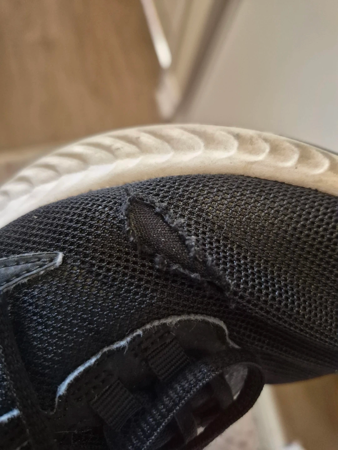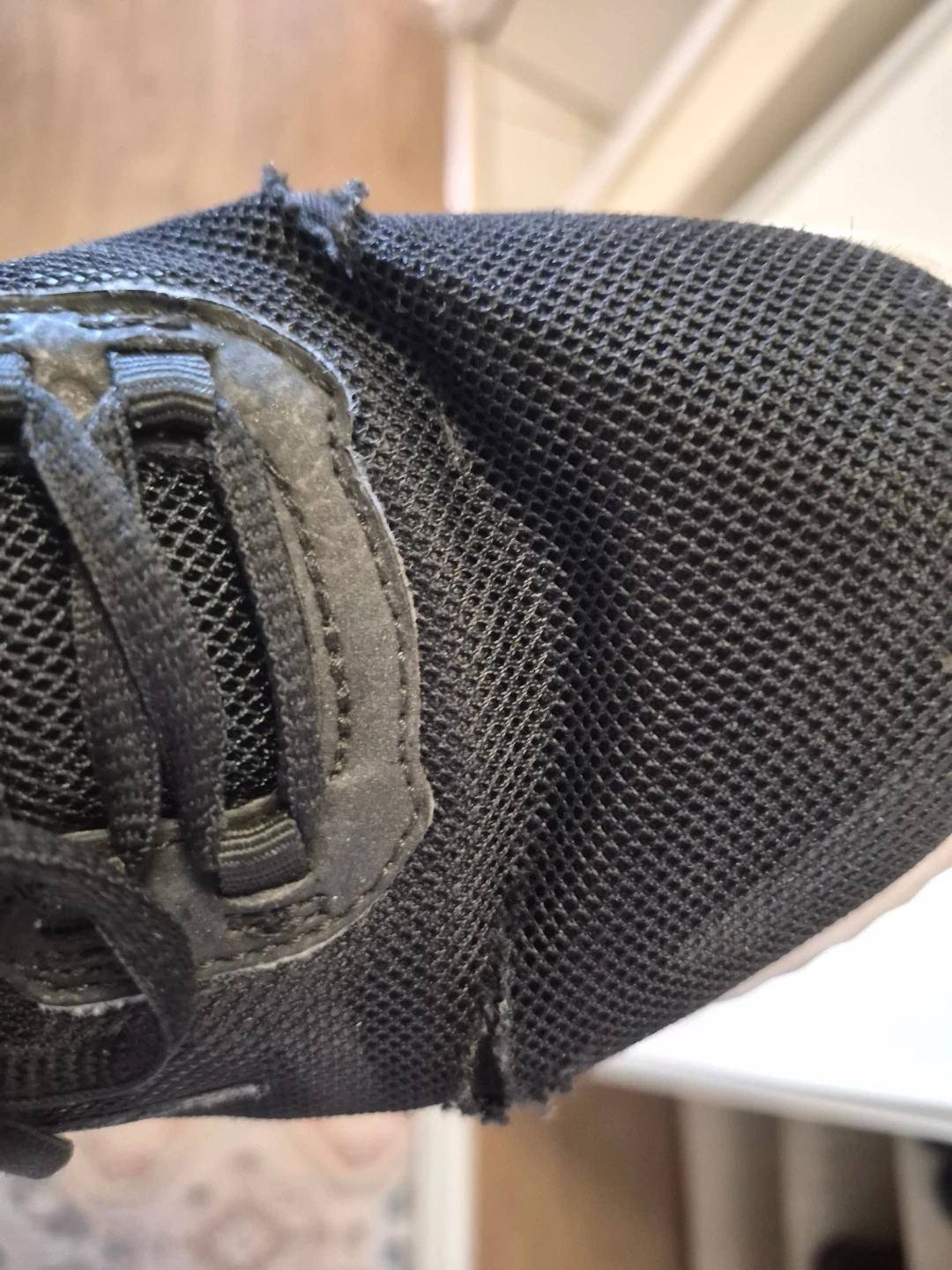 The fabric on the top of the sneakers is torn, but overall they are intact. You can wash them in the washing machine. I do this many times and they stay intact.