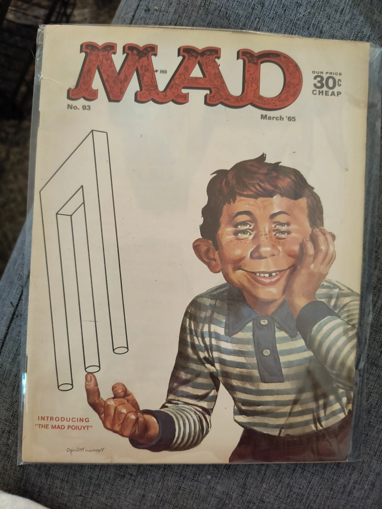 541Vintage magazine. March 1965 issue #93. Cover features a boy with a cartoon face. Introducing 'the MAD POIUYT' rare book.