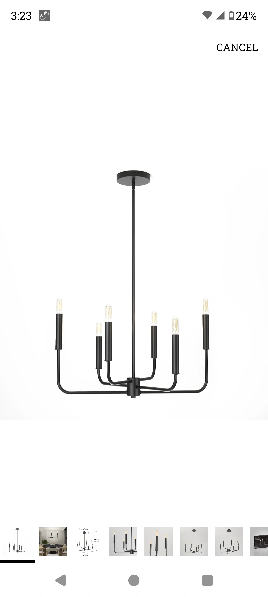 Modern black chandelier with 6 lights. New in box, never used. selling for $50 or OBO Can deliver for extra $5-$10 within 15-20km around me.
