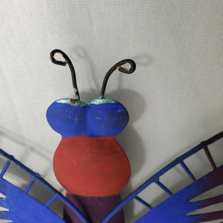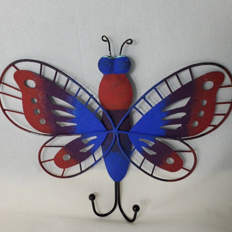 Metal butterfly wall hook with two hooks. Red, blue, and purple. The green and yellow one is missing an antena. selling both together. Located northside by londonderry mall.