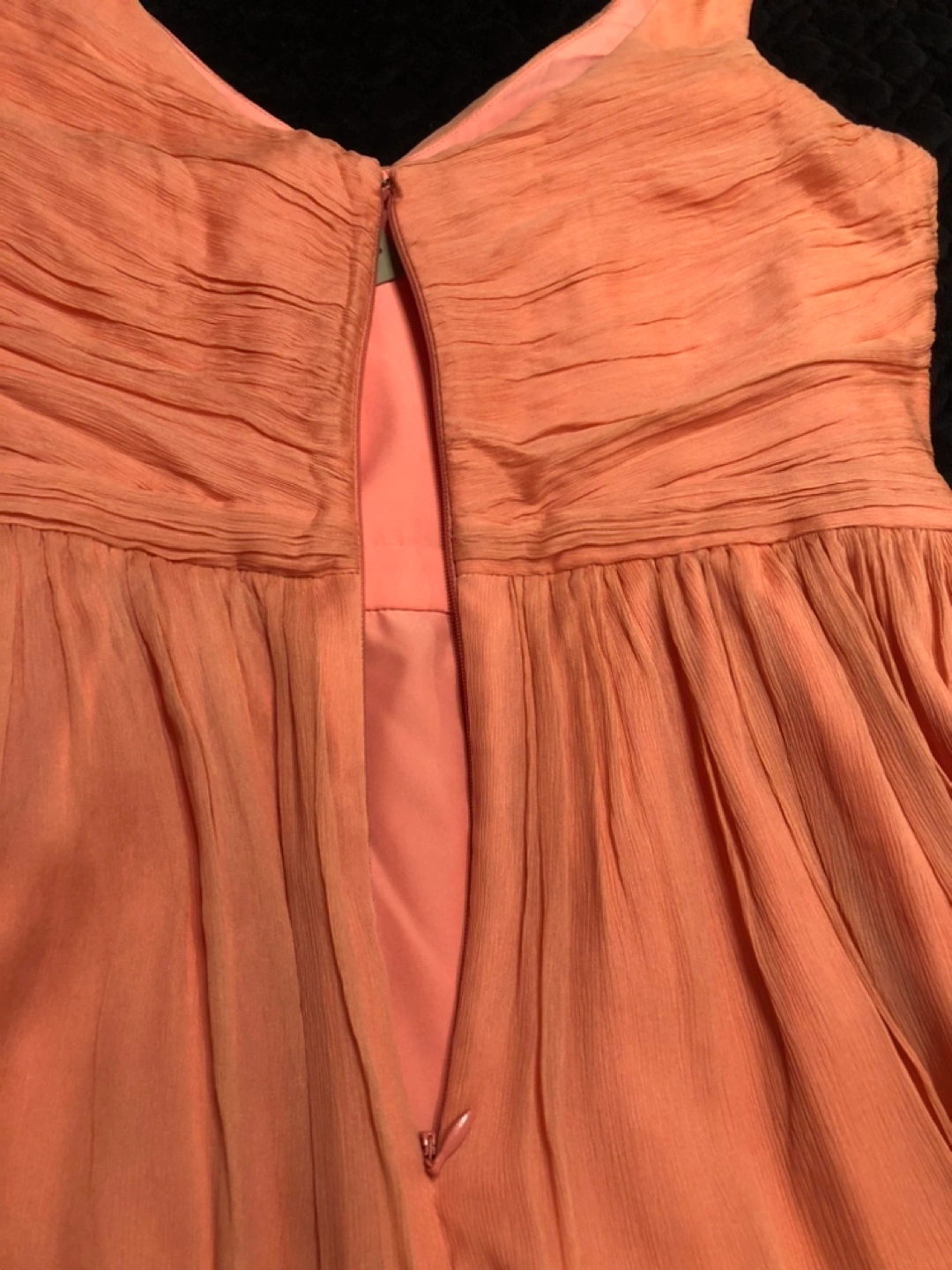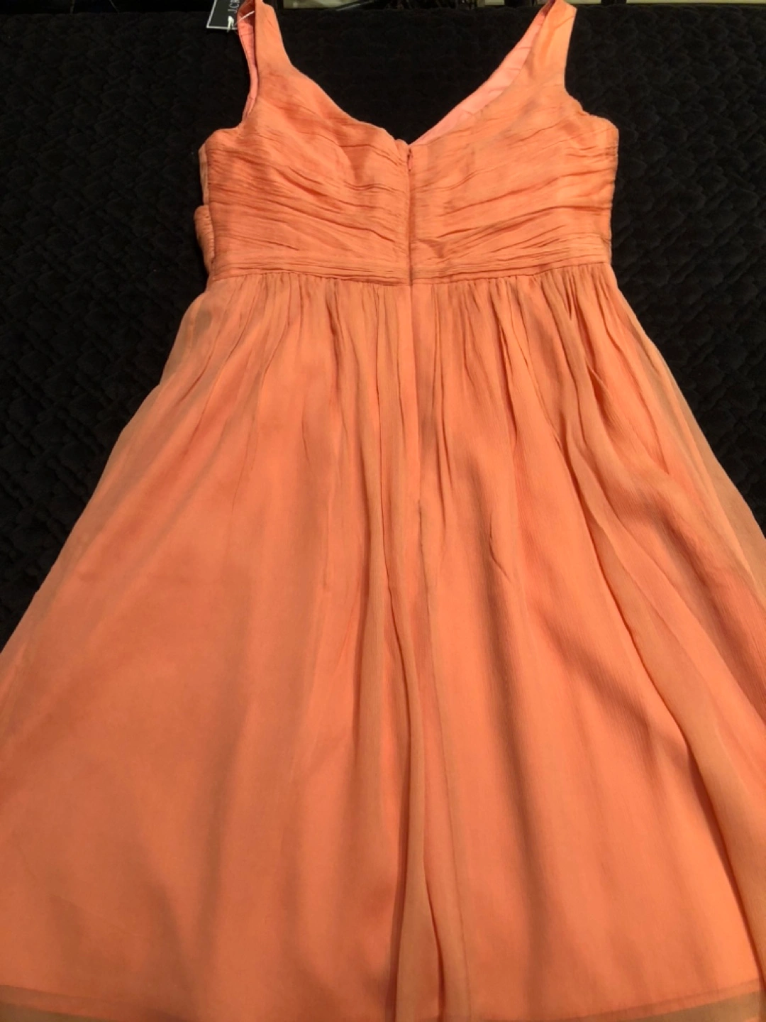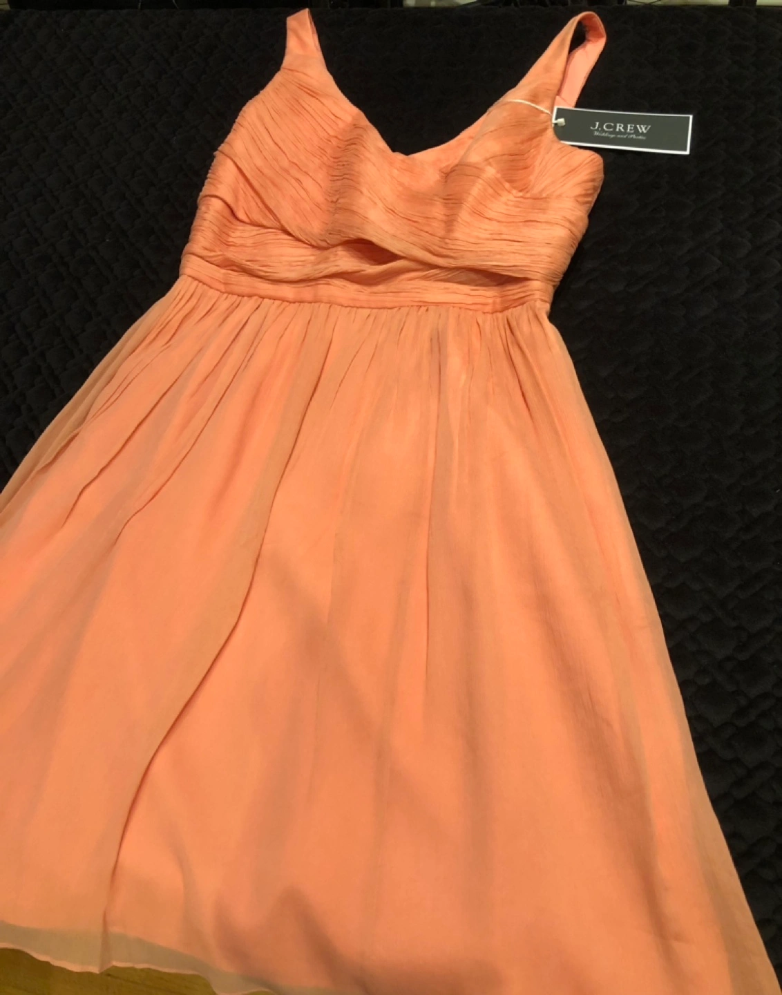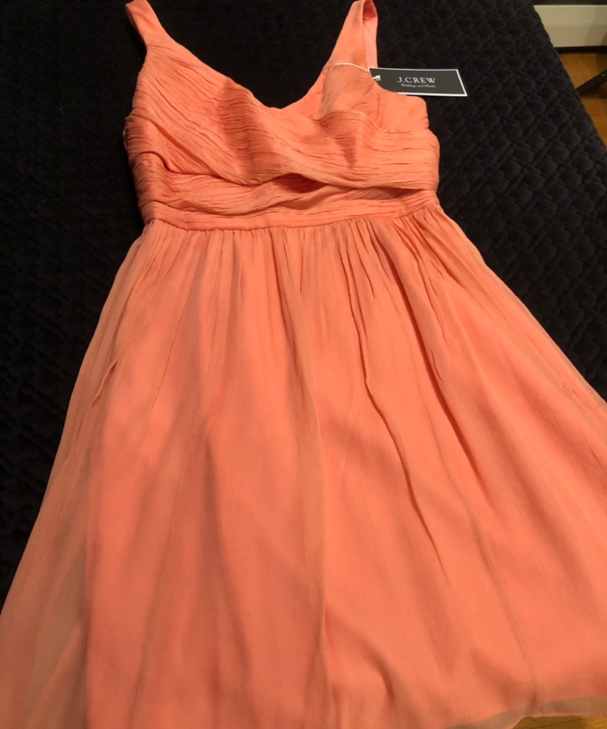 J.Crew coral dress with a v-neck and straps. The dress has a flowy skirt and is perfect for a wedding or other special occasion. Compare at $350. Located in Downtown Vancouver.