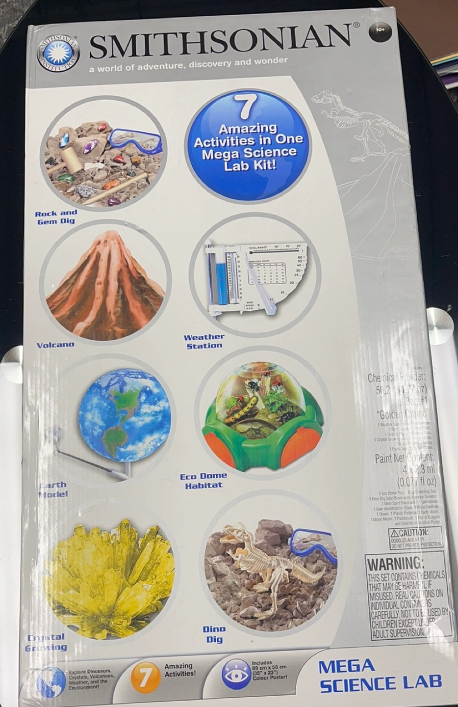Smithsonian Mega Science Lab helps children learn about volcanoes, weather, crystal growing, dinosaurs, microscopic science and outer space,