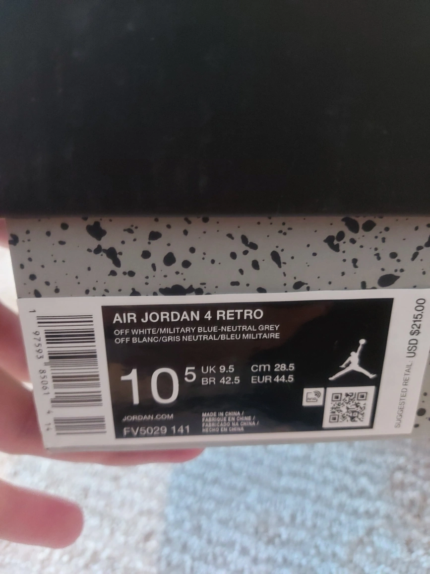 Air Jordan 4 Retro 'Military Blue' in size 10.5. Comes with original box.