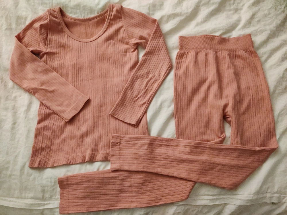 Cozy ribbed lounge set. Includes long-sleeve top and matching pants. Perfect for relaxing at home or wear as baselayer for winter. Never worn only washed. Can fit women XXS too.