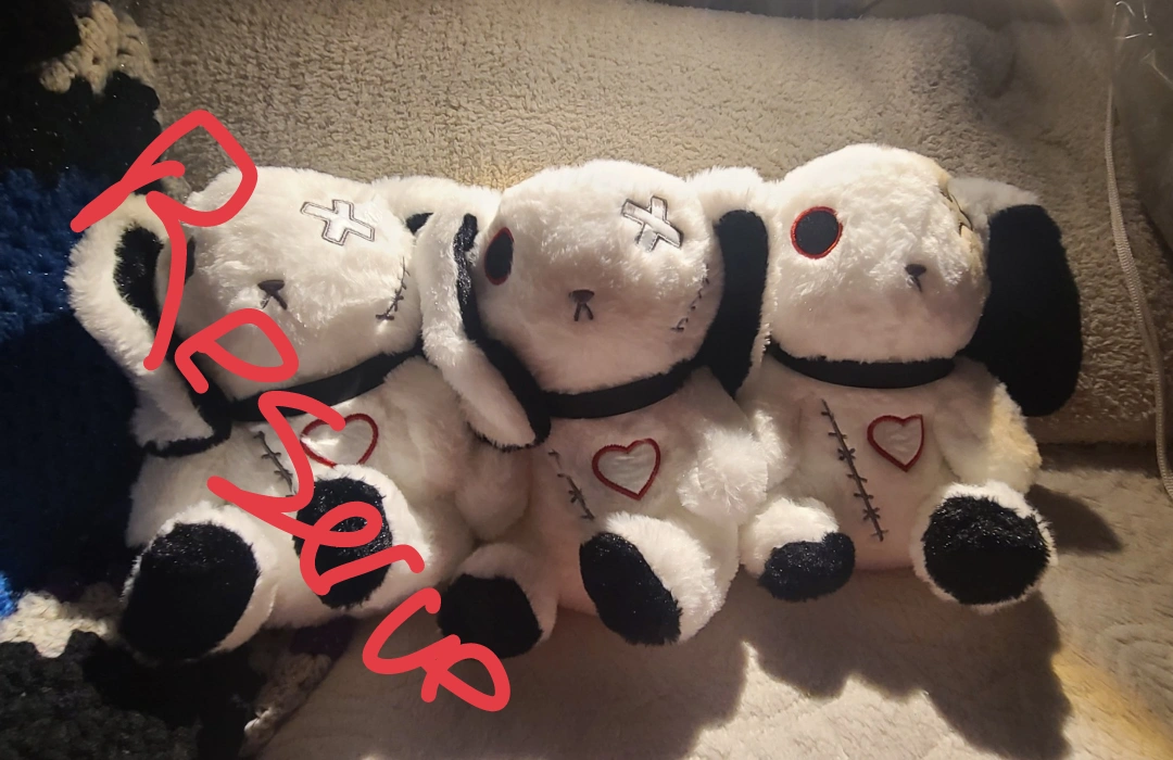 FREE FREE FREE READ FIRST!!! message with day and time you want to comeby 1 PER PERSON 2 left Pick up by Gerrard and River St address given once meetup is set. 1min walk from intersection Rabbit white plush toys with black accents. Each has a red heart and stitched X on one eye.