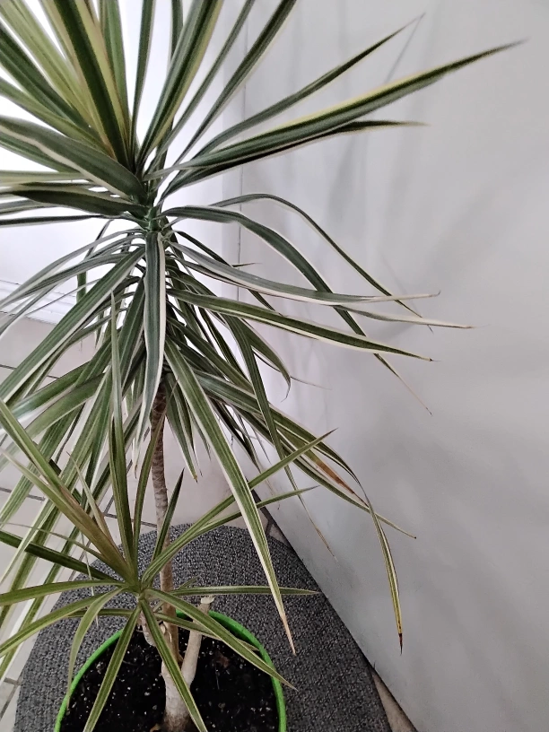Large Dracaena Marginata plant in a green pot. The plant is in a good condition. it has many benefits for indoor spaces as air purification,humidity control.It surives under any conditions.it styles up your home.