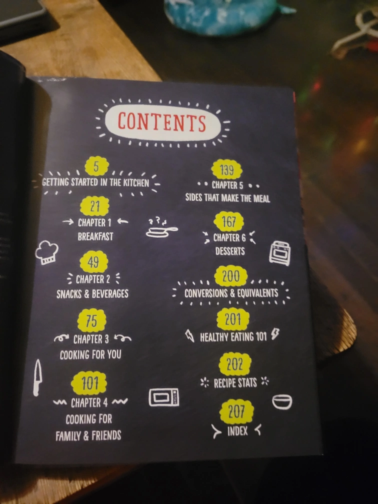 Cookbook for young chefs, includes 100+ recipes, covers breakfast, snacks & beverages, cooking for you, cooking for family & friends, sides that make the meal, desserts, conversions & equivalents, healthy eating 101, and more.
