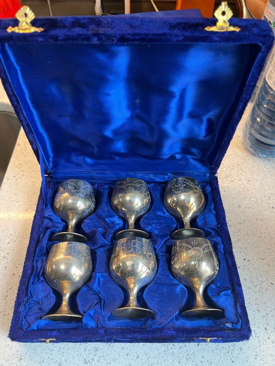 Vintage Goblets, Set of 6, Silver-Plated, Original Velvet Box.