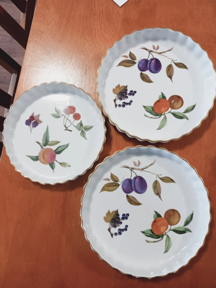 Set of three gorgeous Royal Worcester Evesham oven to tableware dishes. gold rims Fruit pattern.