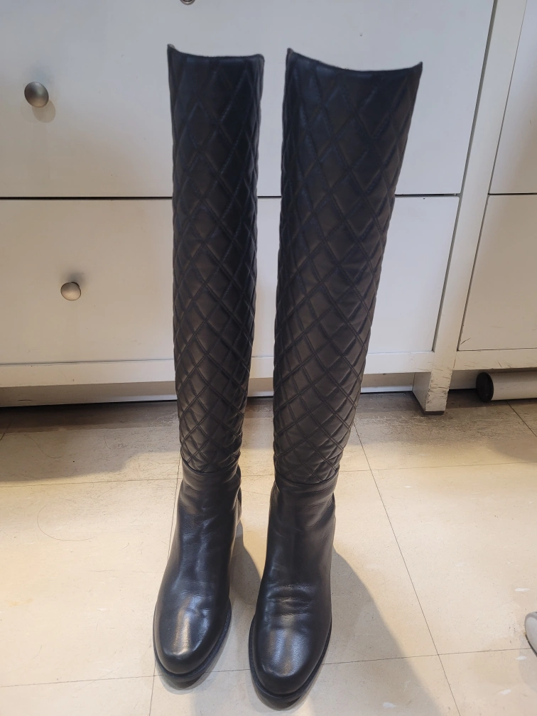 Black quilted knee-high boots. sheep Leather . high quality luxury brand name.