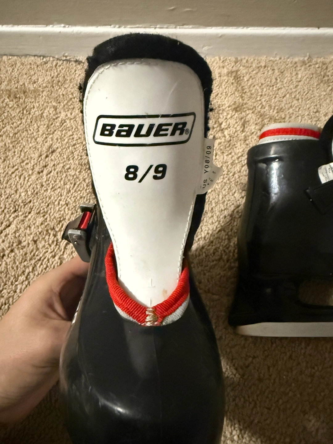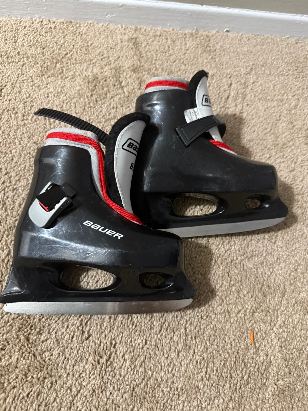 Black and white ice skates. Size 8/9. Pick up at Frobisher Lane.