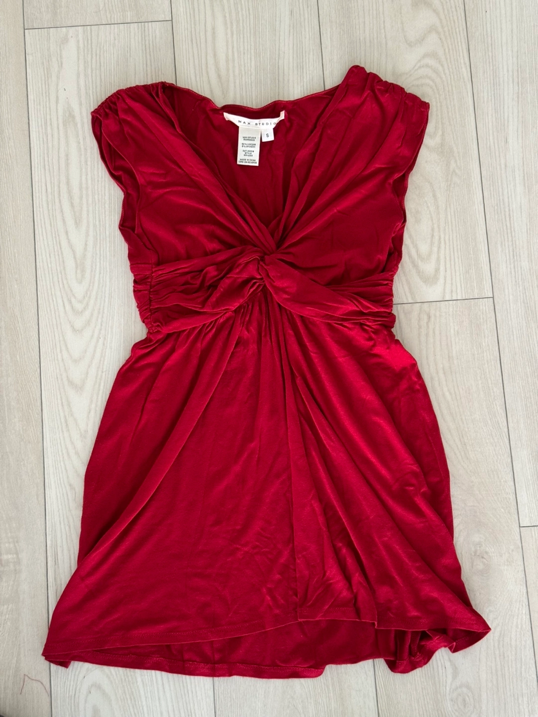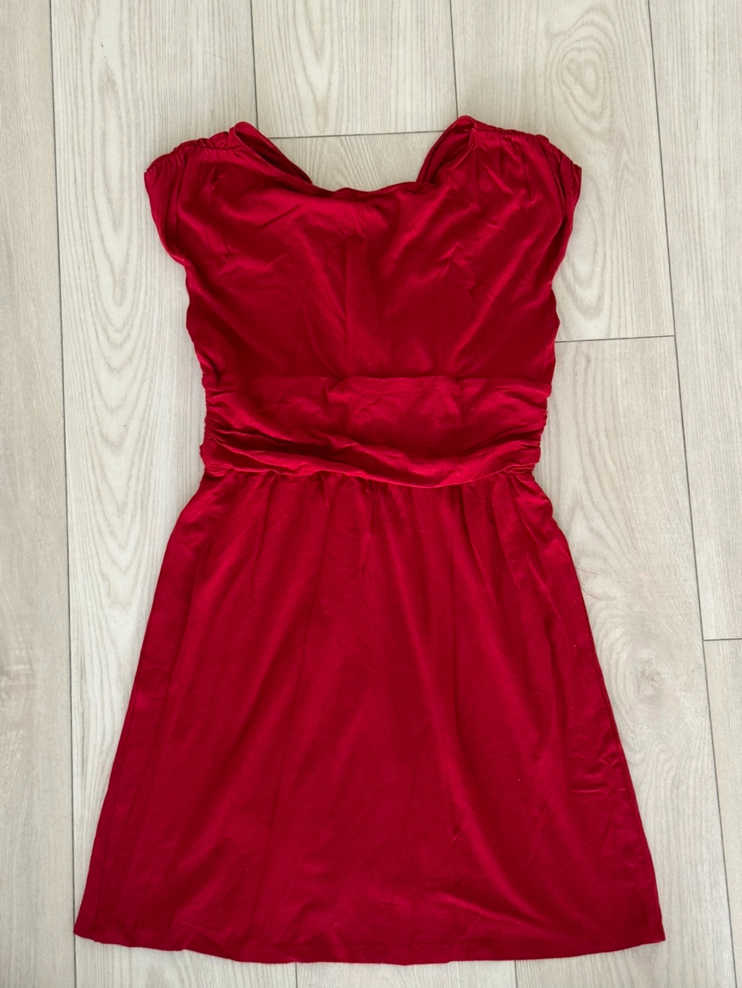 In great condition. Super flattering Y2K style red v-neck top with a knotted front detail. Stretchy so it will fit if you’re typically a medium as well. Looks great paired with low rise jeans! You can also wear it as a mini dress as well. Price is firm, cash only please. Pickup downtown Toronto/Jarvis & Gerrard or Yonge & Dundas.