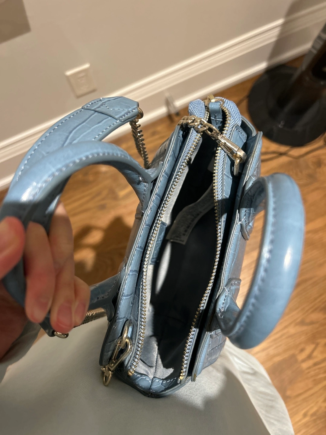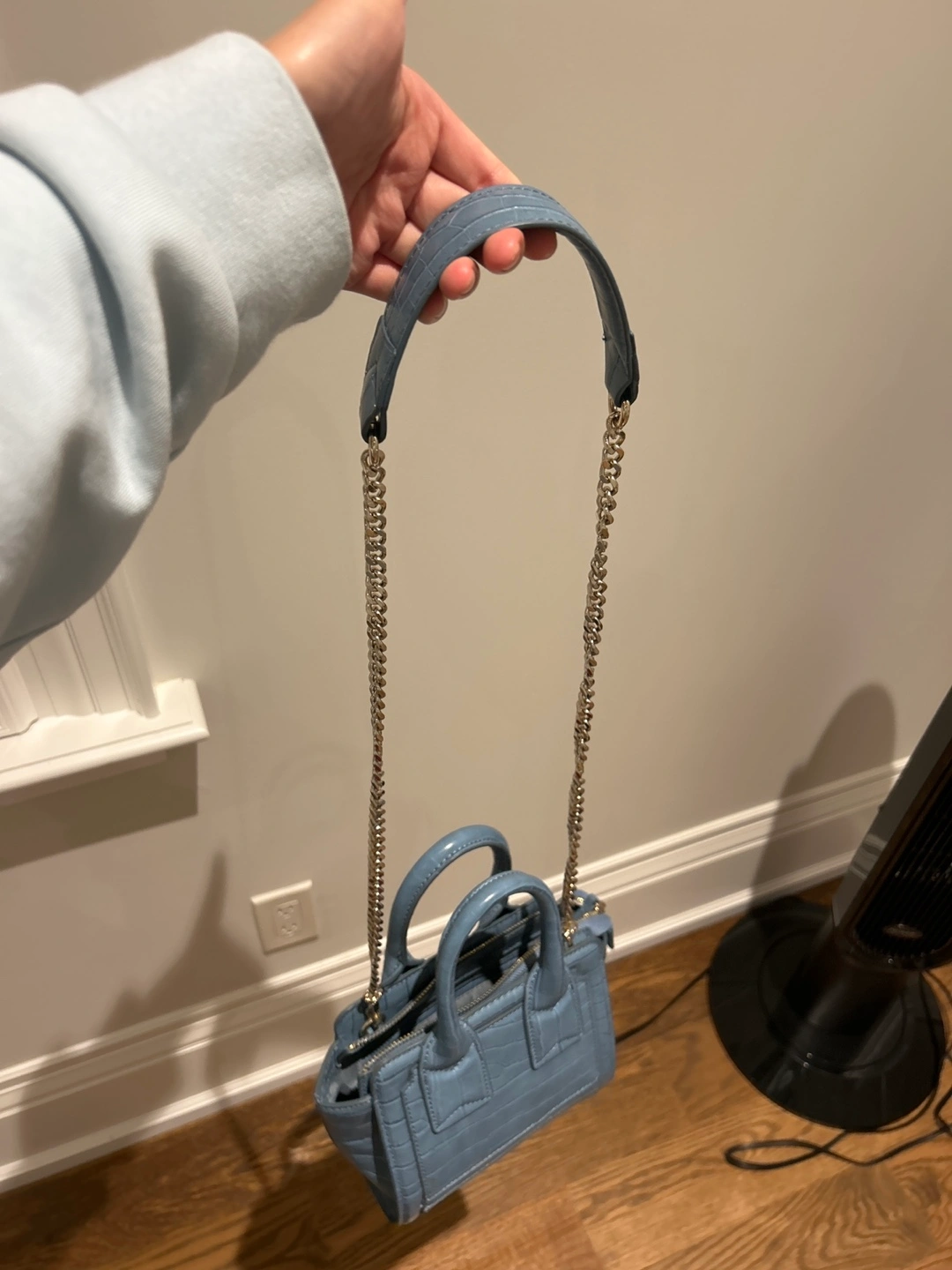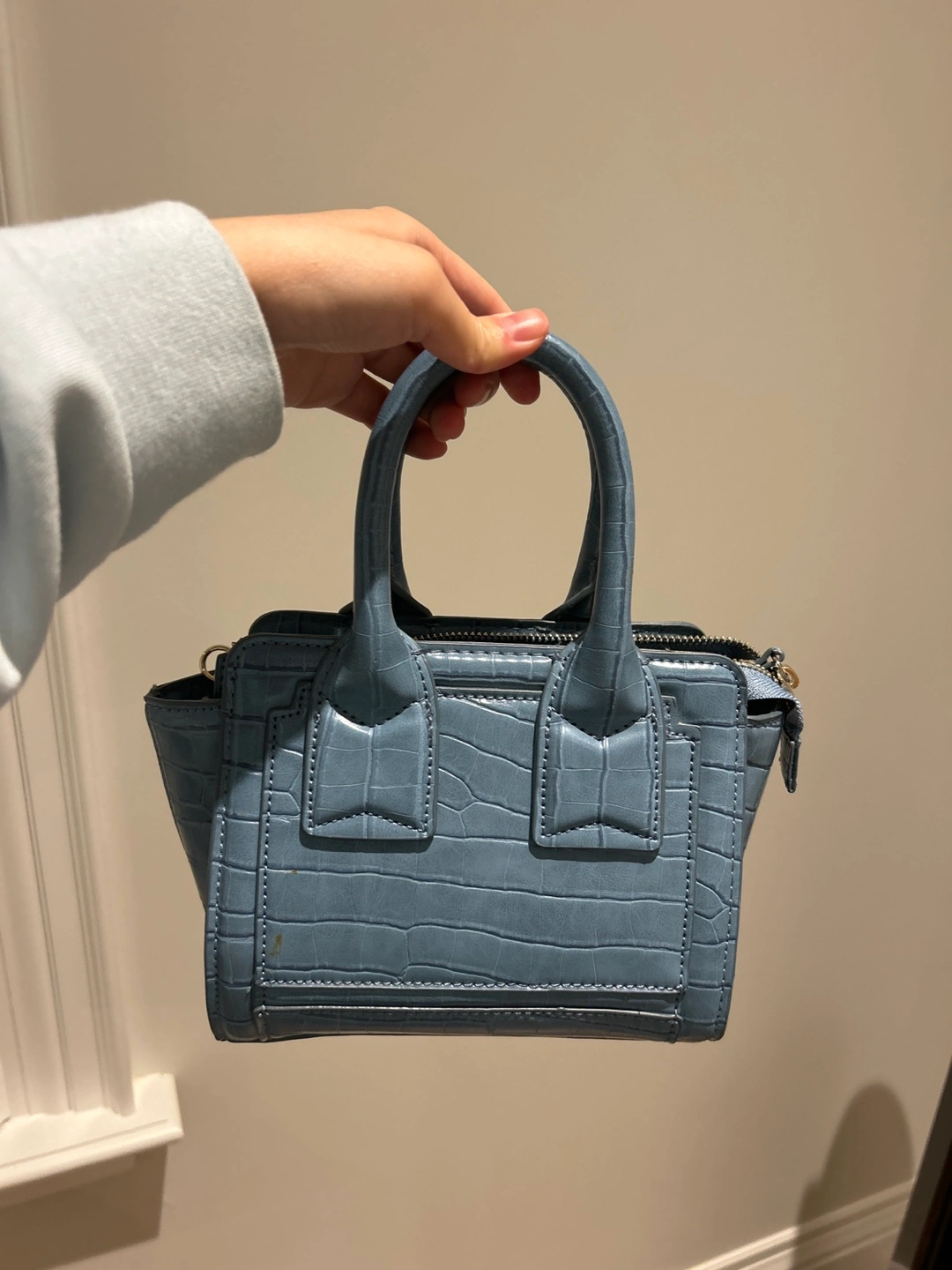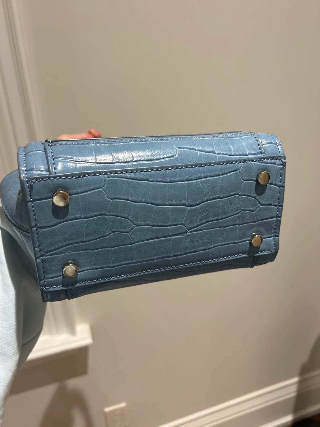 Blue Crocodile-Embossed Handbag with Chain Strap