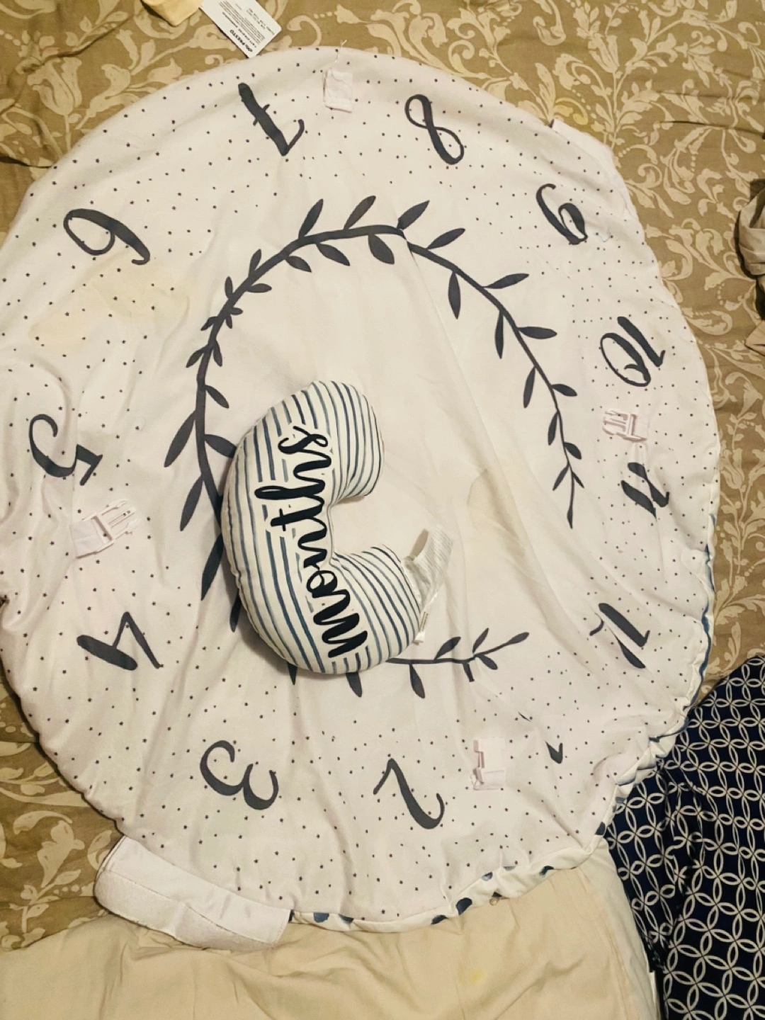 Baby milestone blanket with a pillow. Numbers 1-12 around the edge. Pickup only next to alexmuir park