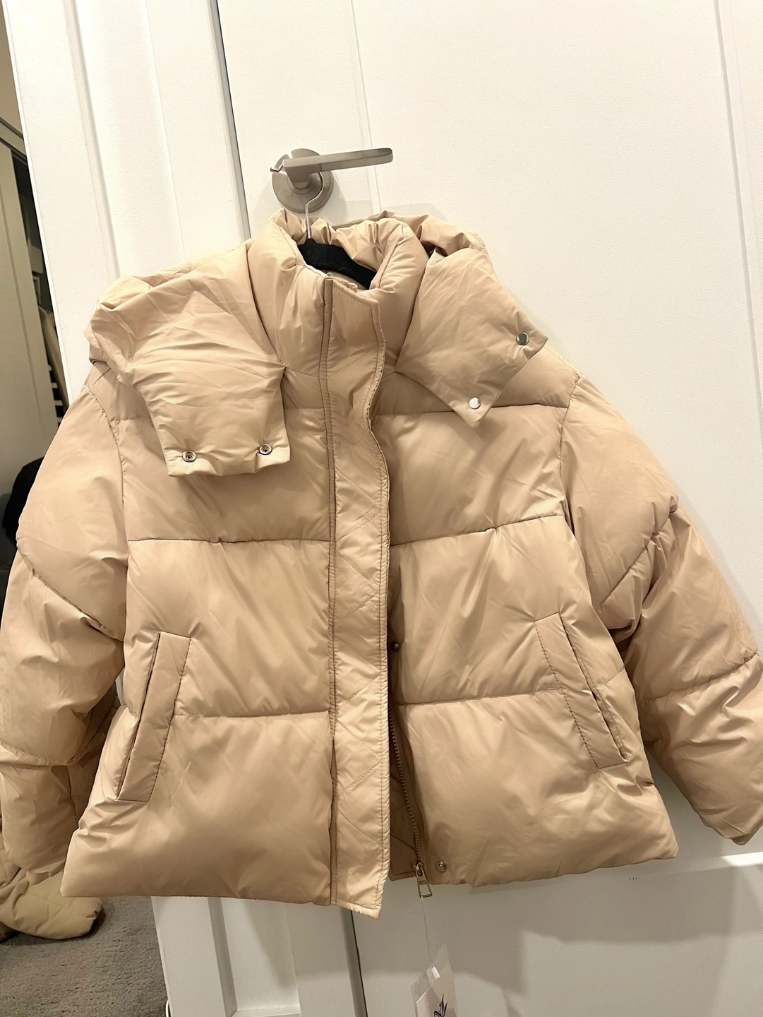 Beige puffer jacket with a hood (unable to remove) Size S Brand new with tag PICK UP IN RICHMOND ONLY