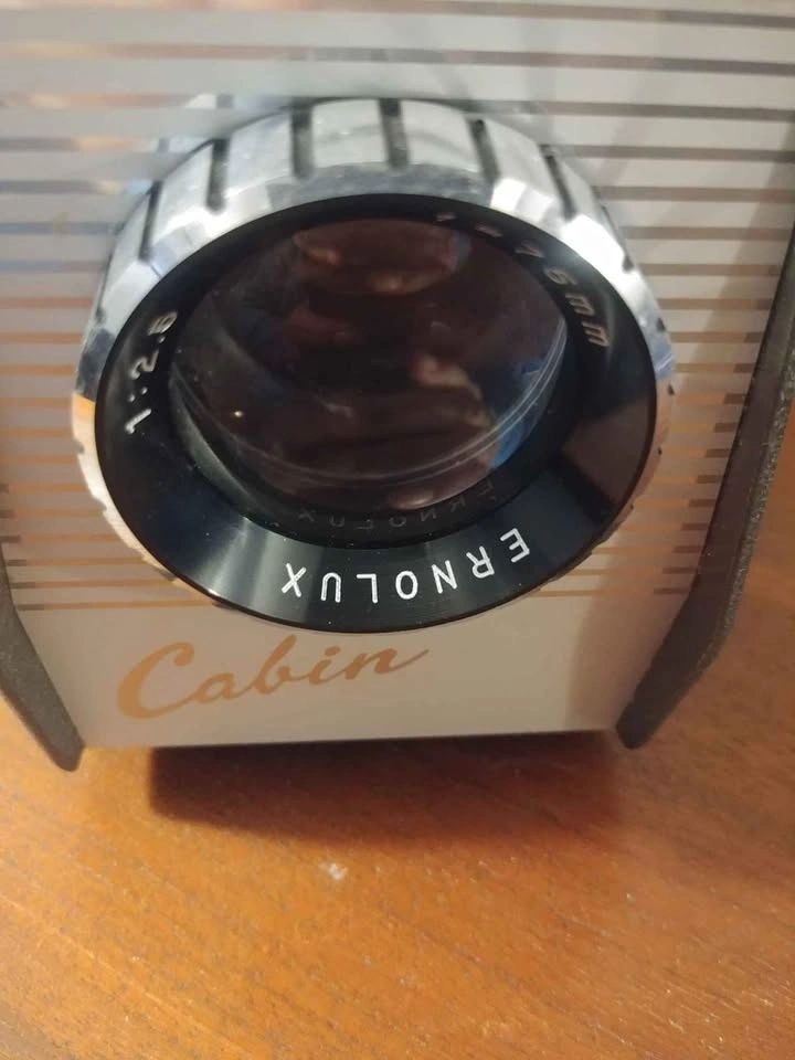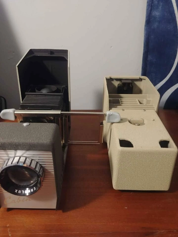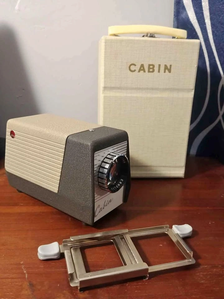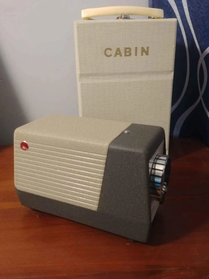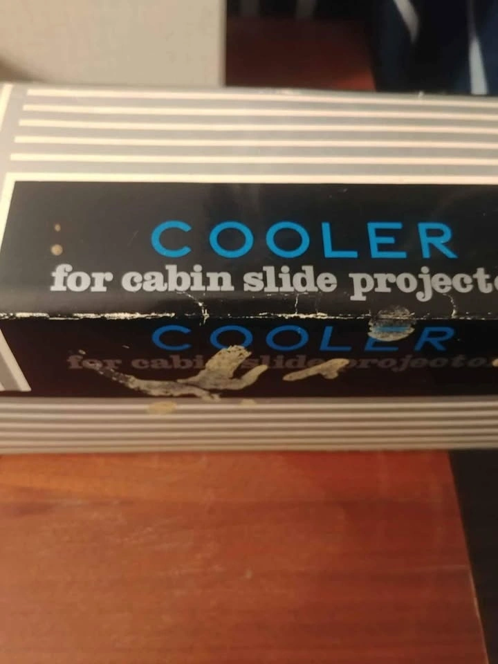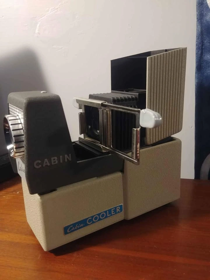 Excellent looking Cabin Slide Projector plus Cooler which has a fan to keep the motor cool. Retro looking and great for display. Not tested as the plug is not from this country.