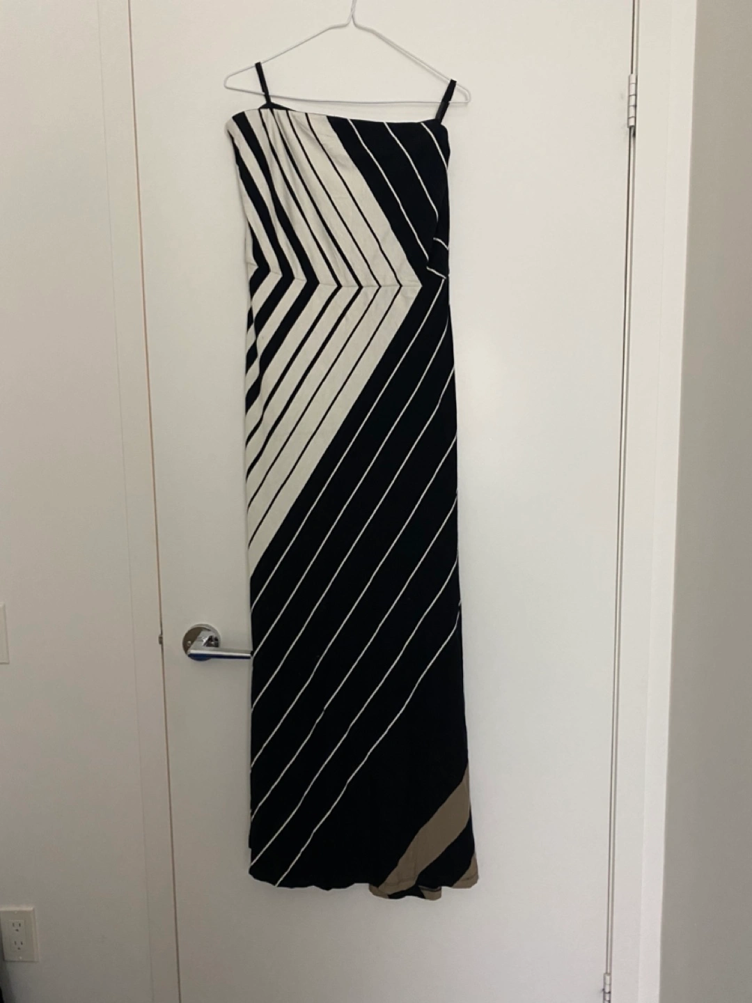 335Black and white stripped strapless contour maxi tube dress. Cash pick up only.