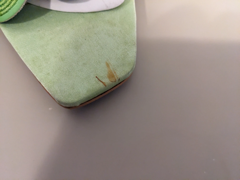 547Green and white heels, size 38. Made in Italy. Never used, but there are rusty areas when stored.