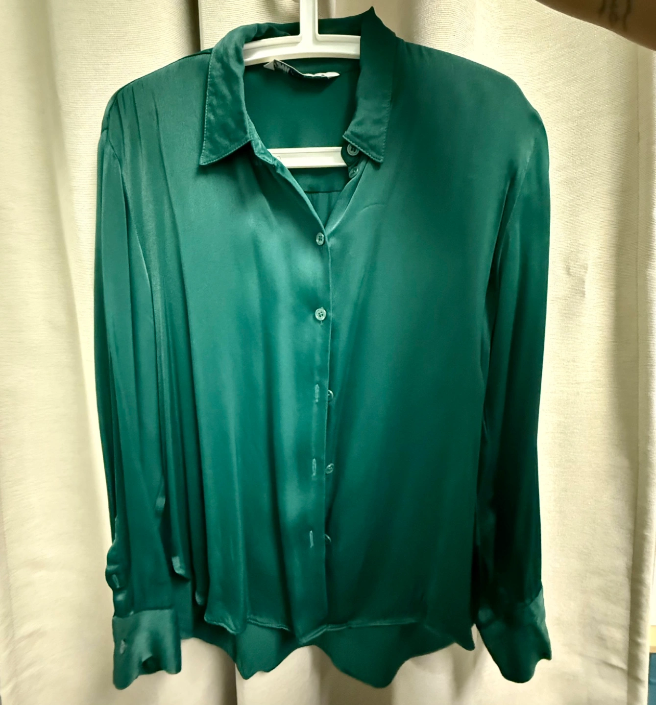 Buy & SellZara Green Satin BlouseZara Green Satin Blouse$12Long sleeve collared blouse with button closure. Made of a silky material. Worn one. Mint conditionConditionLike newSizeLBrandZaraWHERE TO MEETMabel’sView MapSELLERverifiedNataliaJunction Area1357 reviews1 chats·3 favorites·26 viewsSEND CHAT TO SELLERHi Natalia! I’m interested in your listing.Hi Natalia! I’m interested in your listing.Get the Karrot app to chatSign In to chat