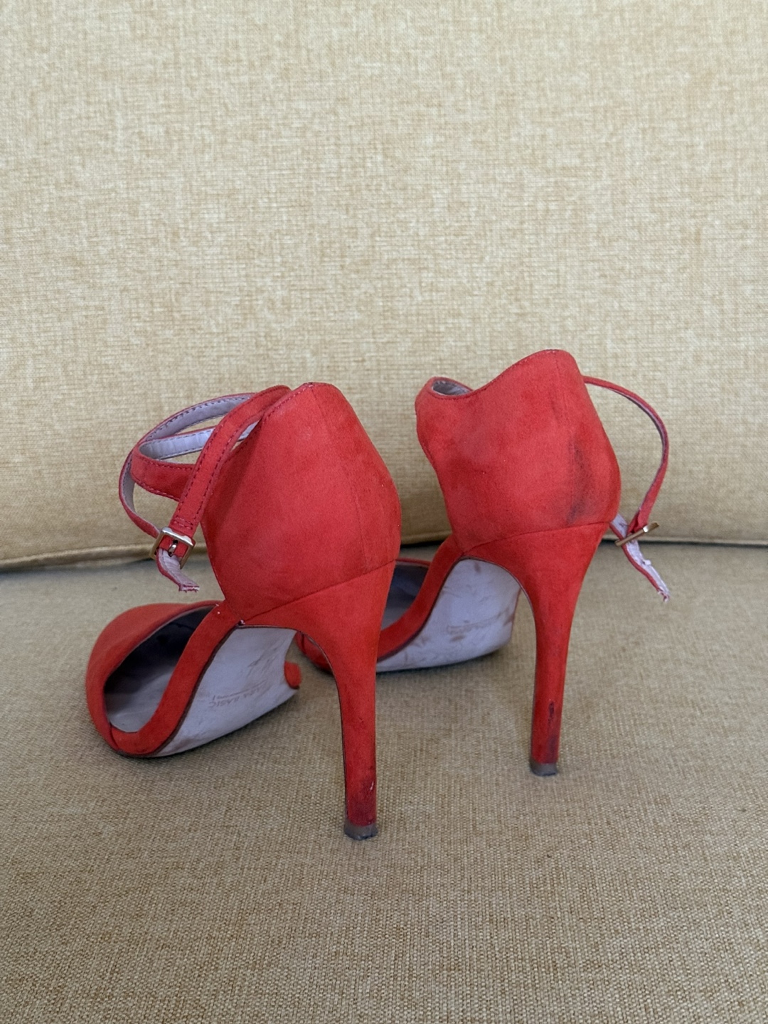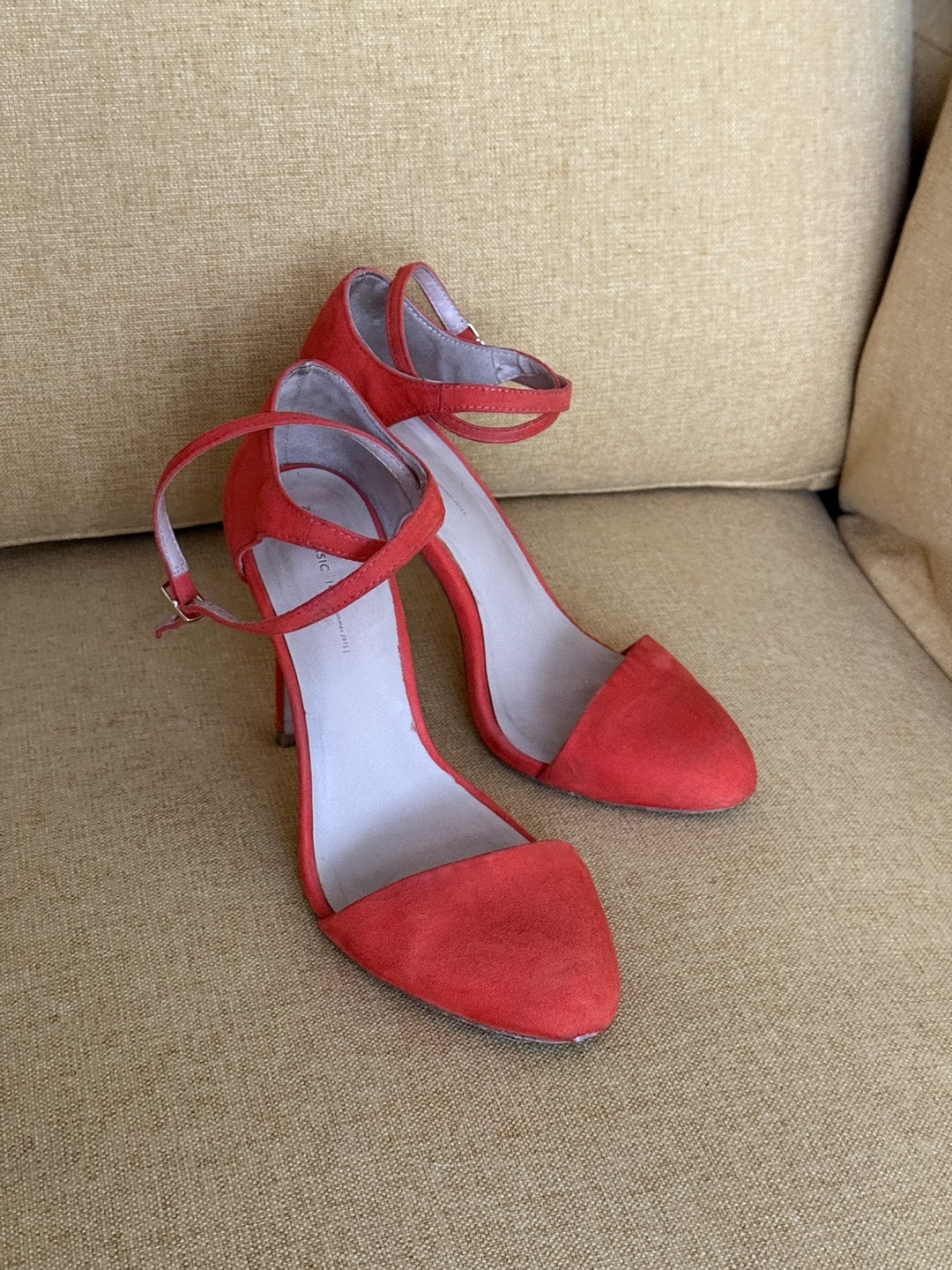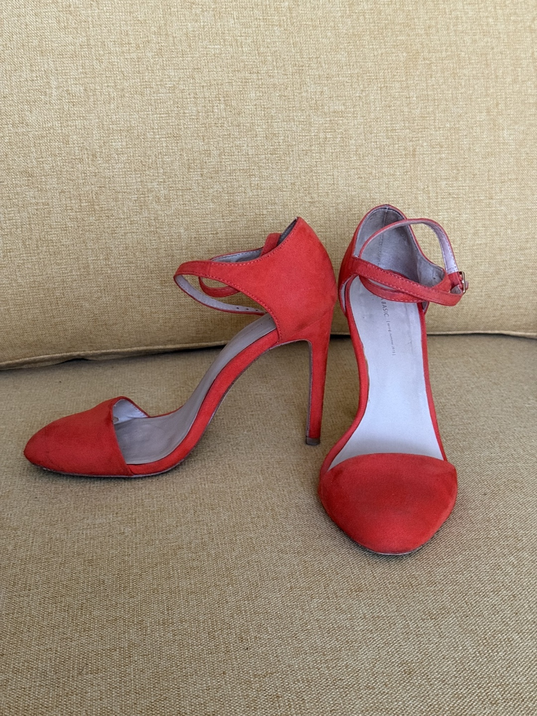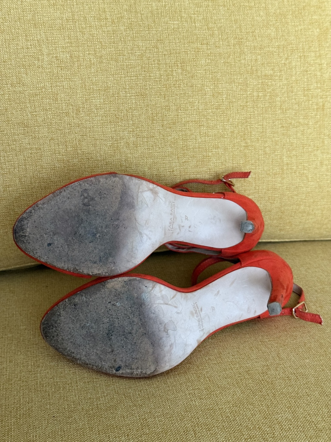 1 / 41 / 4Buy & SellZara orange Suede HeelsZara orange Suede Heels$10Orange suede heels with ankle strap. Size 37. Used. Comfortable heelsConditionOkaySize37BrandZaraWHERE TO MEETMabel’sView MapSELLERverifiedNataliaJunction Area1458 reviews0 chats·0 favorites·18 viewsSEND CHAT TO SELLERHi Natalia! I’m interested in your listing.Hi Natalia! I’m interested in your listing.Get the Karrot app to chatSign In to chat