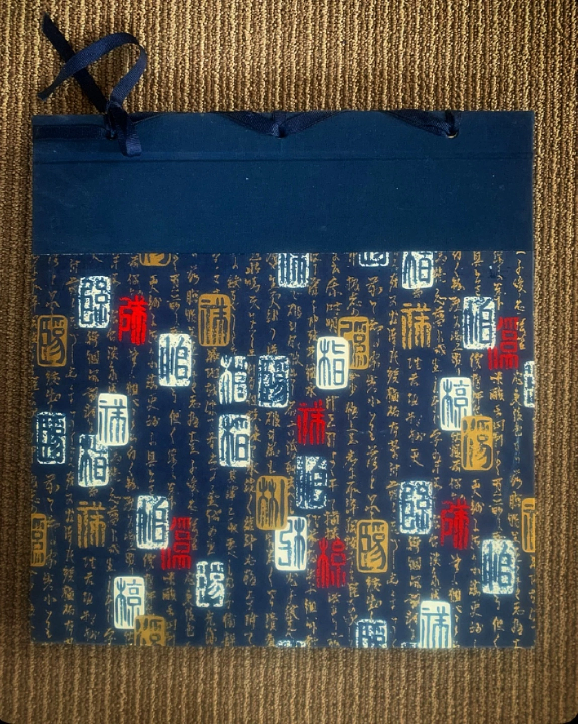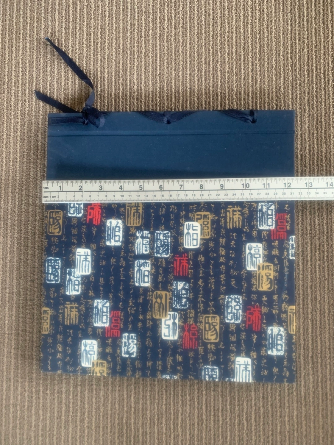 168Large scrapbook. Features Japanese characters in red, gold, and white on a black background. The book is approximately 11.5 inches wide by 14.5 inches long. Pick up at Eglinton Ave east at Bayview.