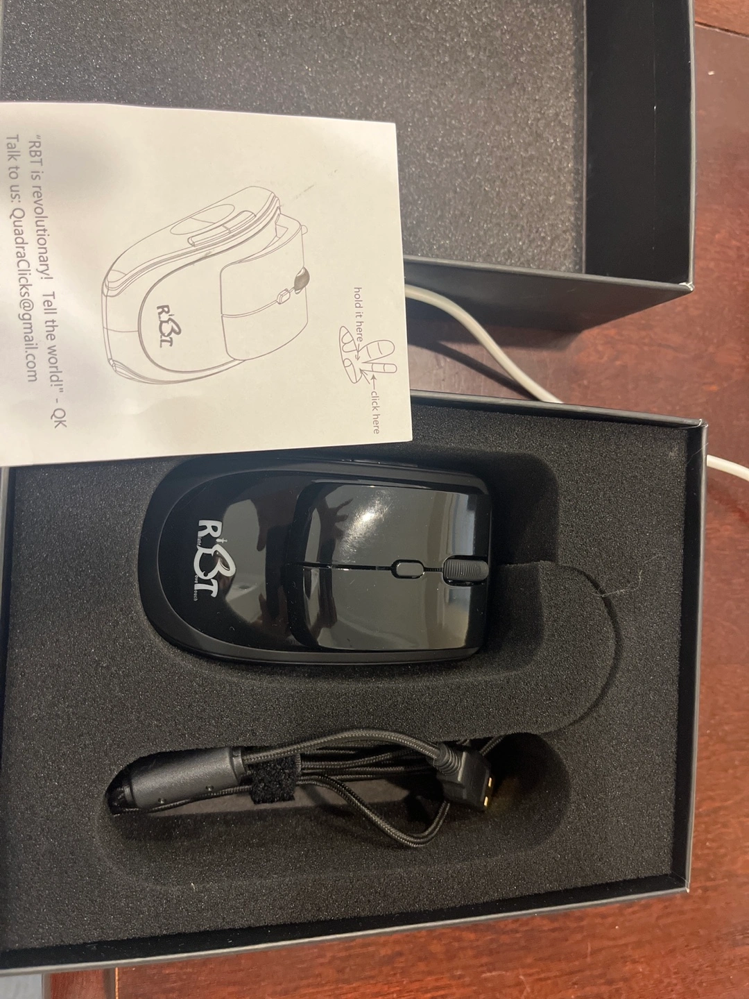76Black wireless mouse. Includes USB receiver and charging cable.
