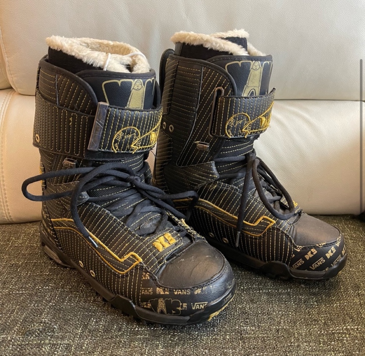1 / 51 / 5Buy & SellVans Hi-Top Snowboard BootsVans Hi-Top Snowboard Boots$100Black and gold snowboard boots with a fuzzy lining. Size 10. Men bootsConditionGoodWHERE TO MEETMabel’sView MapSELLERverifiedNataliaJunction Area1458 reviews1 chats·1 favorites·80 viewsSEND CHAT TO SELLERHi Natalia! I’m interested in your listing.Hi Natalia! I’m interested in your listing.Get the Karrot app to chatSign In to chat