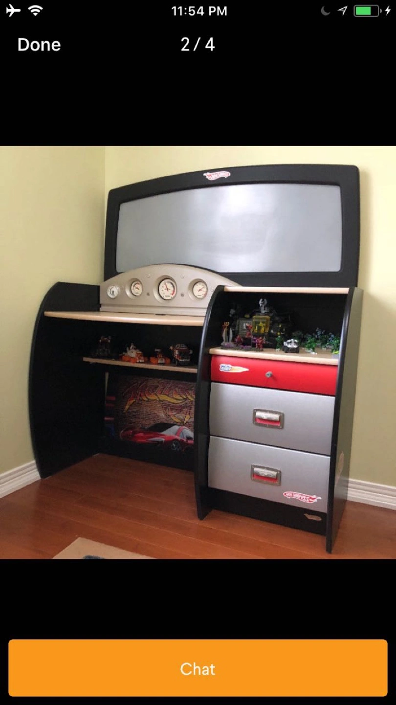 81Twin XL bed, has lots of shelves and large storage drawer Mattress sold separately Desk has a magnetic back board Very spacious dresser Very heavy, need a pick up truck