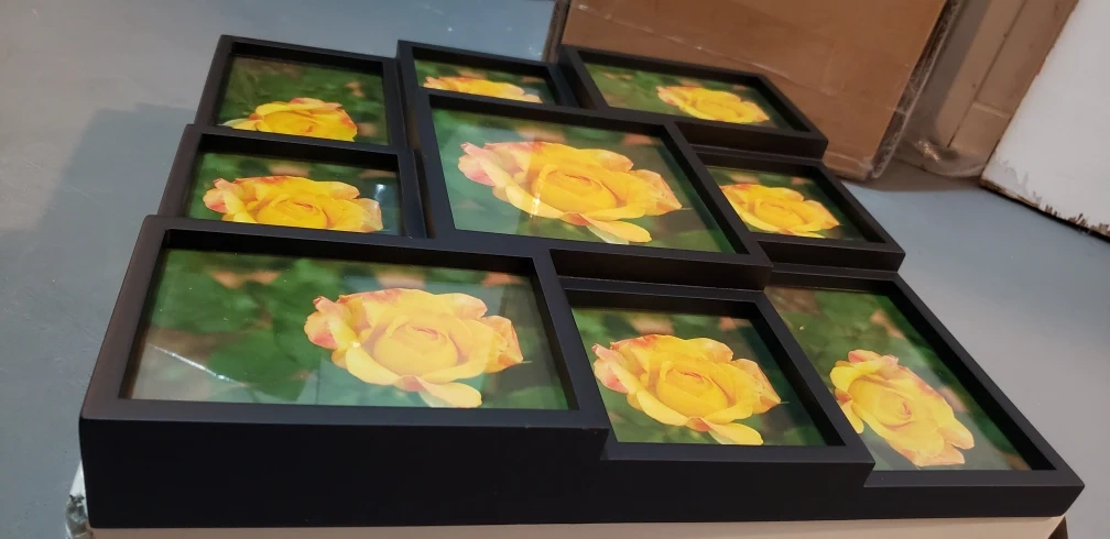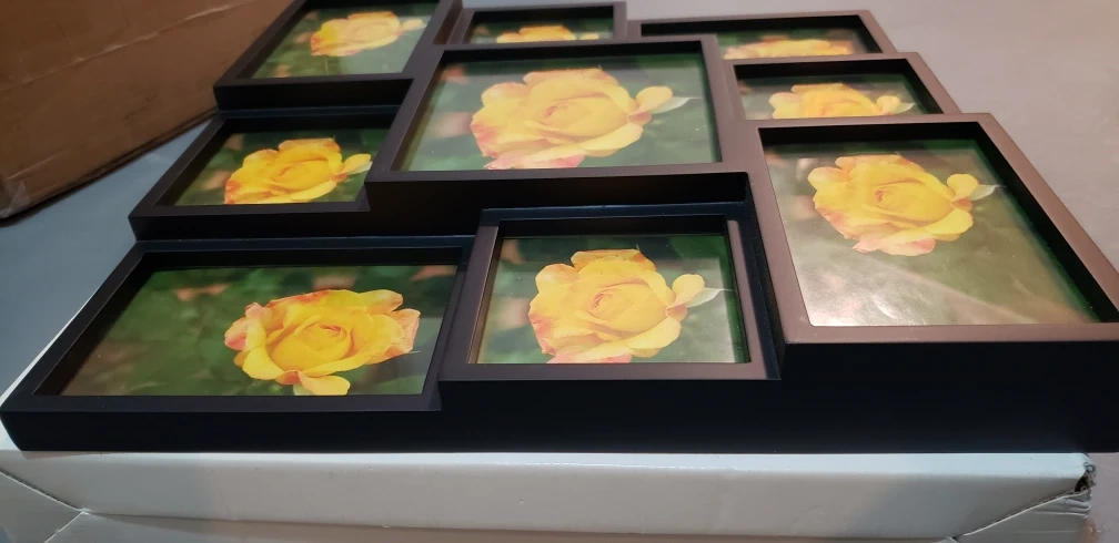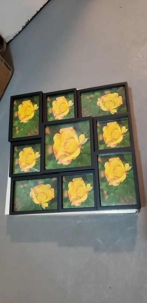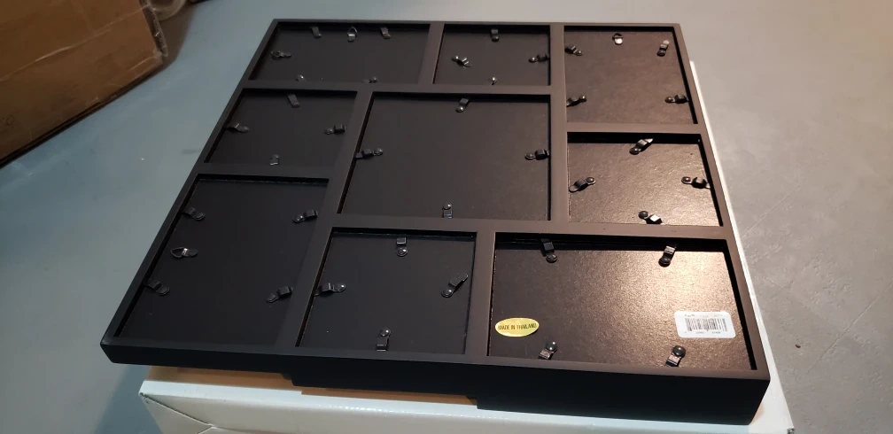 Black picture frame collage for 9 photos. Made in Thailand.