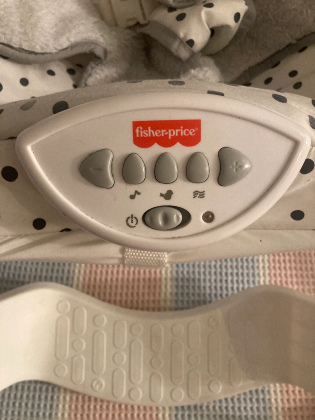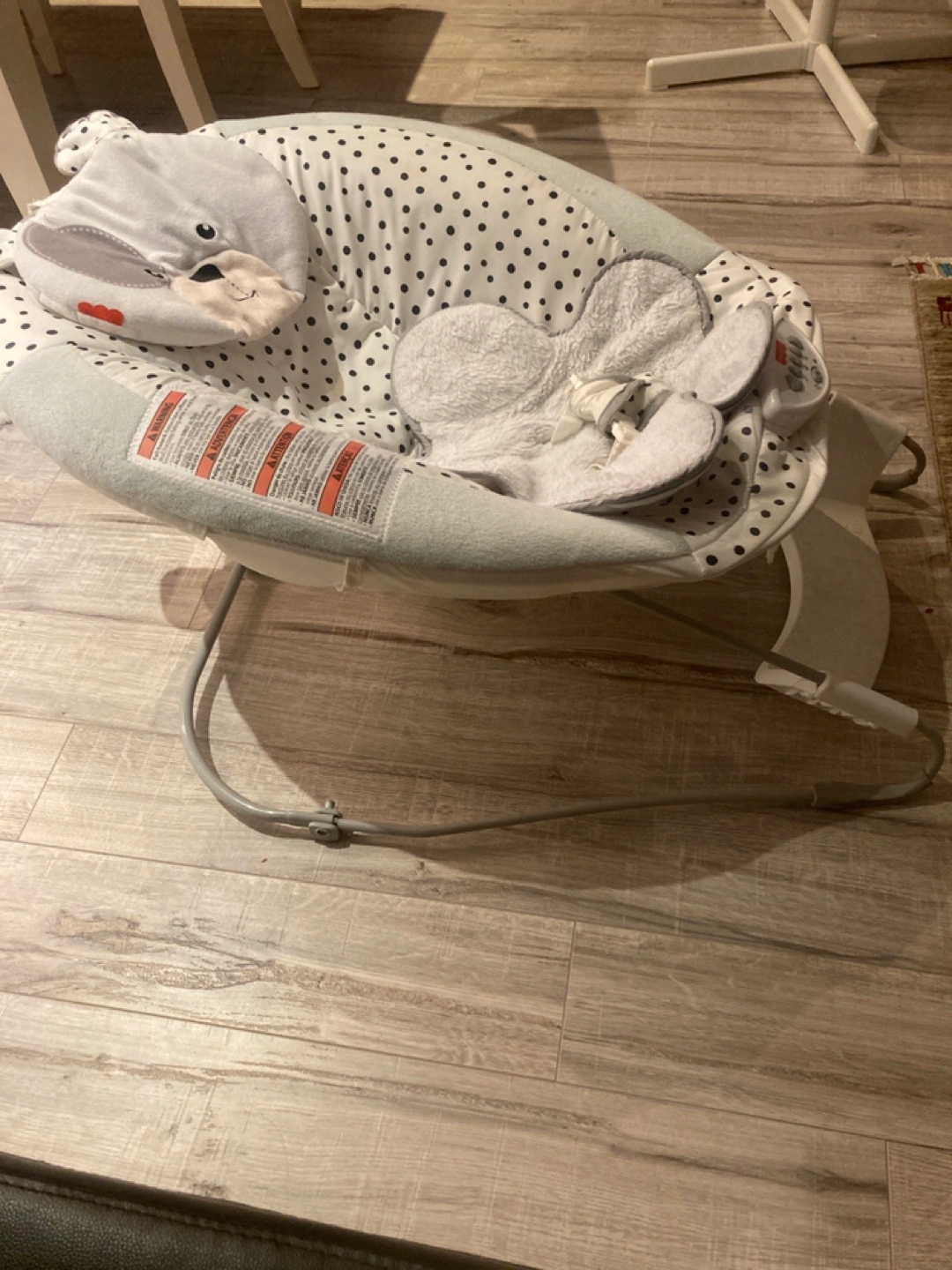 43Vibrating, swinging baby bouncer with music and nature sounds. Includes removable and washable cover