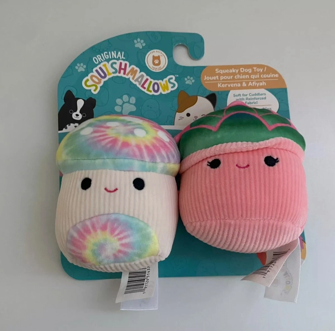 These super-squeaky Squishmallows are pet toys are perfect for playful pups and pups at heart. The reinforced seams are durable and built to last, while the super-soft Squishmallows fabric can provide the ideal cuddle buddy after a long day of play. Squeaky, crinkly, and oh-so squishy, Squishmallows dog toys are perfect for naptime, playtime, and everything in between. Each dog toy features a cute and colorful Squishmallows style, providing collectors the perfect opportunity to match with their pet! Spot clean only. These Squishmallows pet toys are the softest and squeakiest pet toys around.