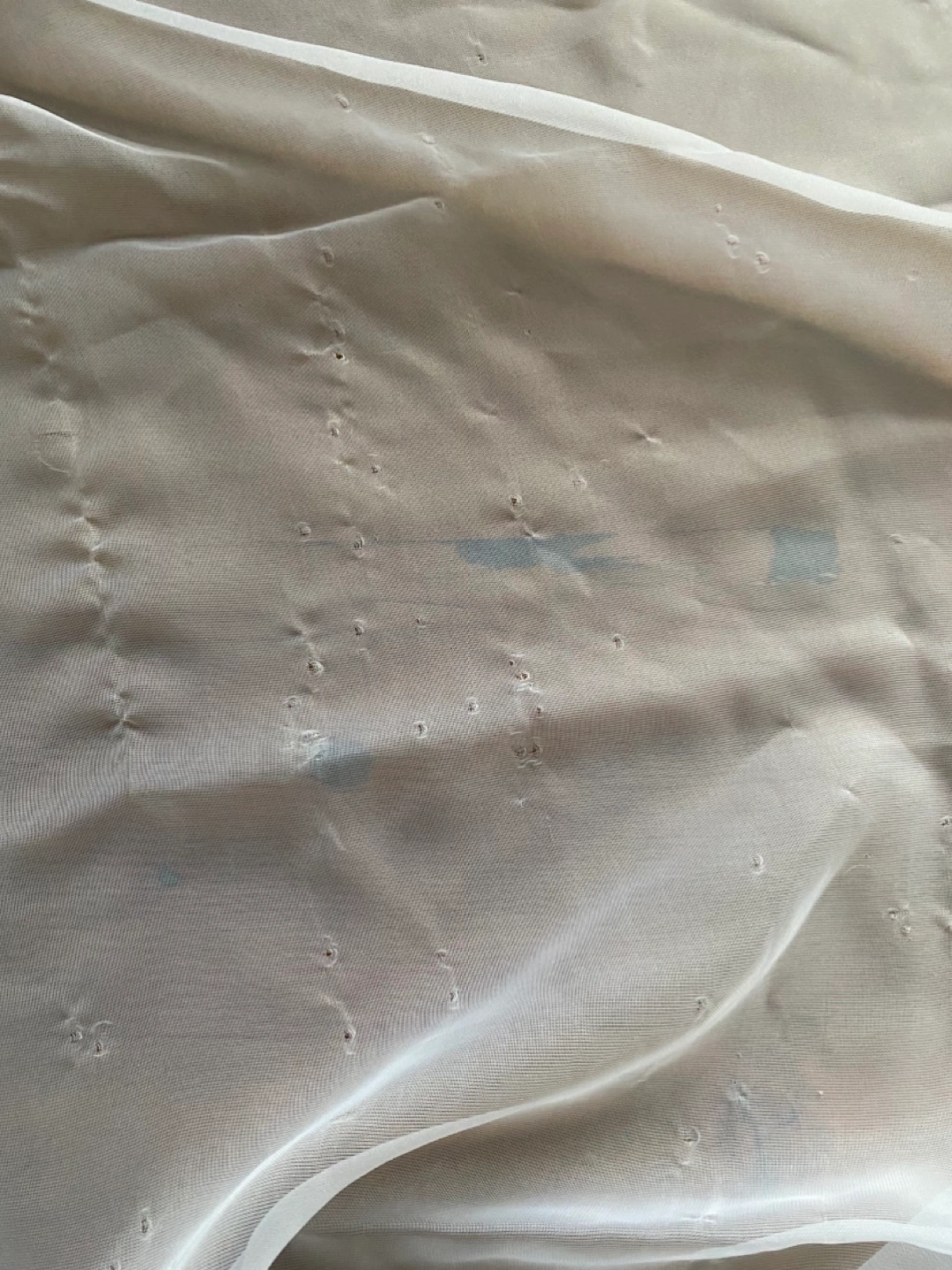 White sheer curtains. Some holes, good for craft projects or curtains for a basement or other area that doesn't need to be formal.