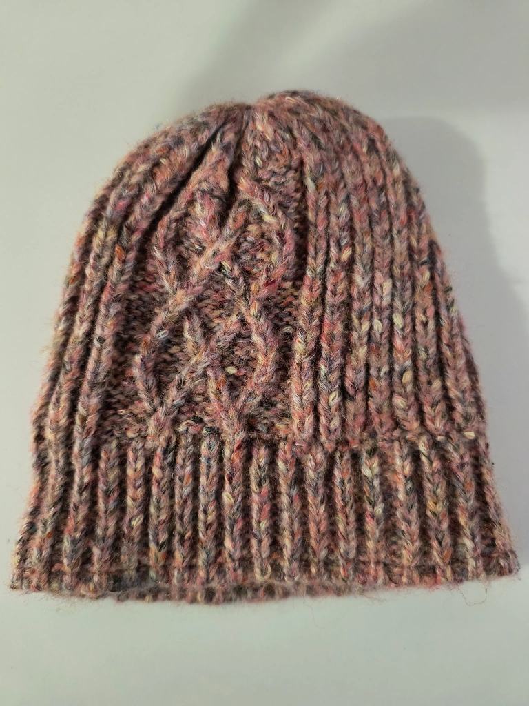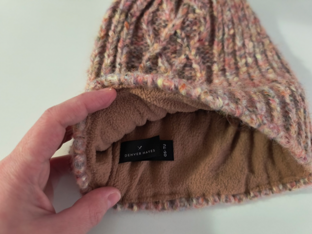 Cable knit beanie with a fleece lining. Multicoloured. One size fits most.