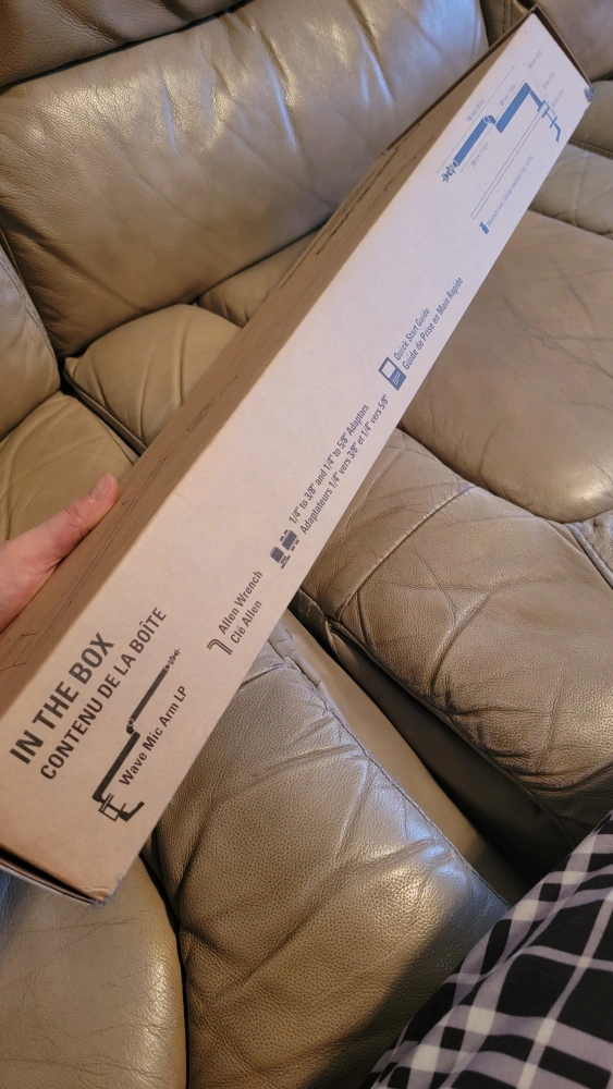 New in box, never opened, microphone arm with low profile and cable management. Includes allen wrench and quick-adjust cables.