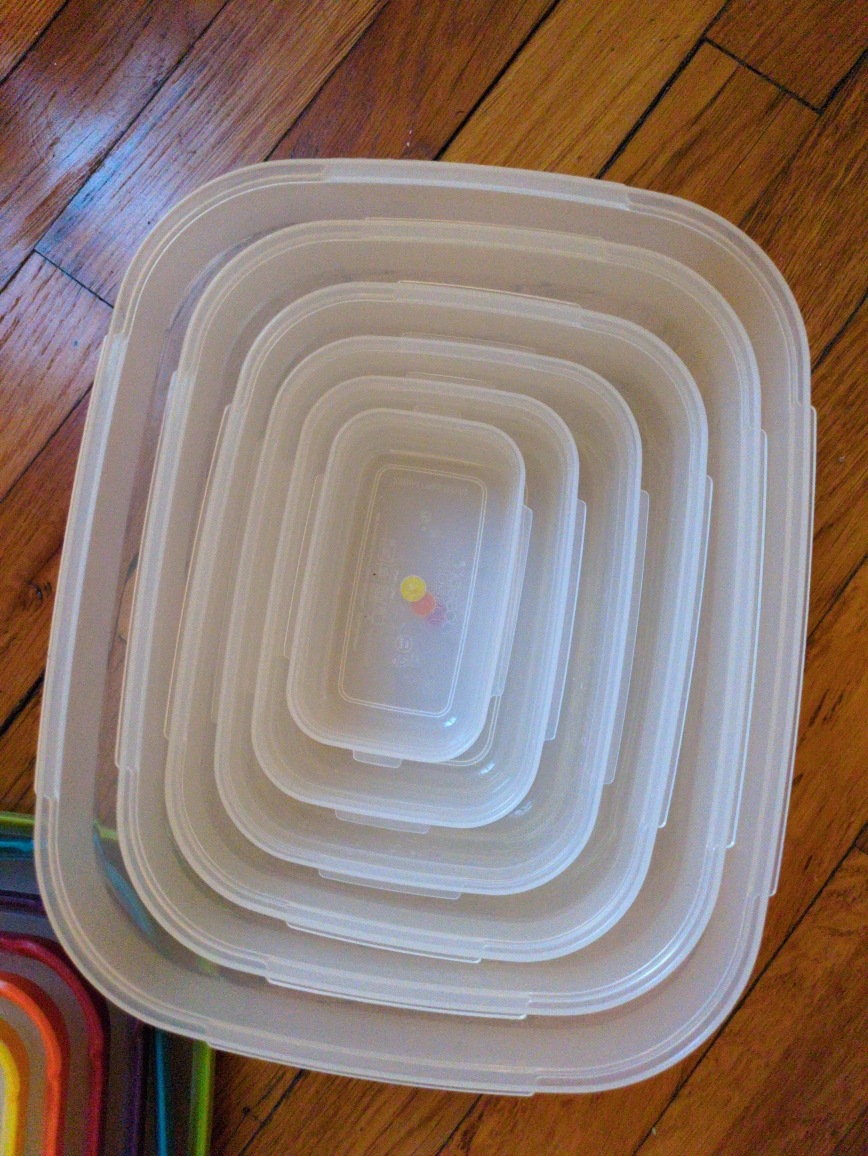 Set of six food storage containers with lids. BPA free, freezer/dishwasher/microwave safe. Barely used like new.