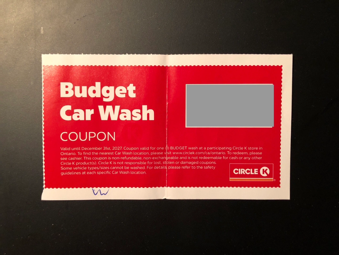 Coupon valid for one budget car wash at a participating Circle K store in Ontario.