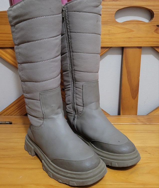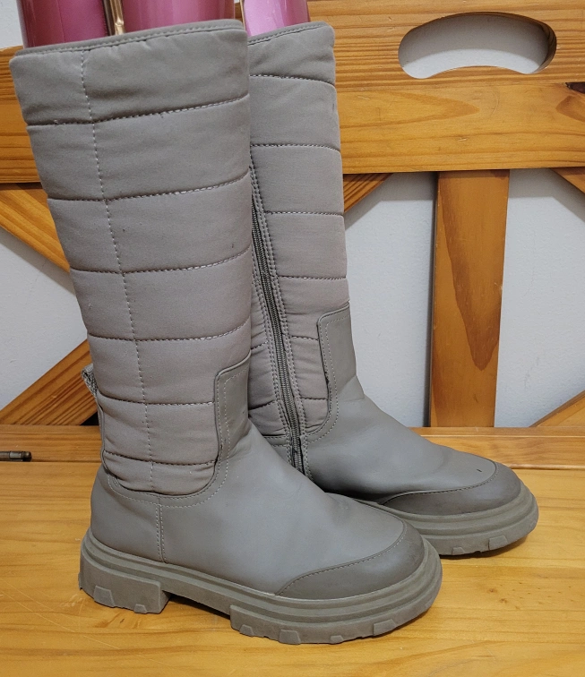 441Thrifty Sale! Size 1 (32 eur) Girls Grey quilted knee-high boots. Side zipper. Thick sole. Pick up only Etobicoke Kipling and Eglinton area no PPU (high-rise)