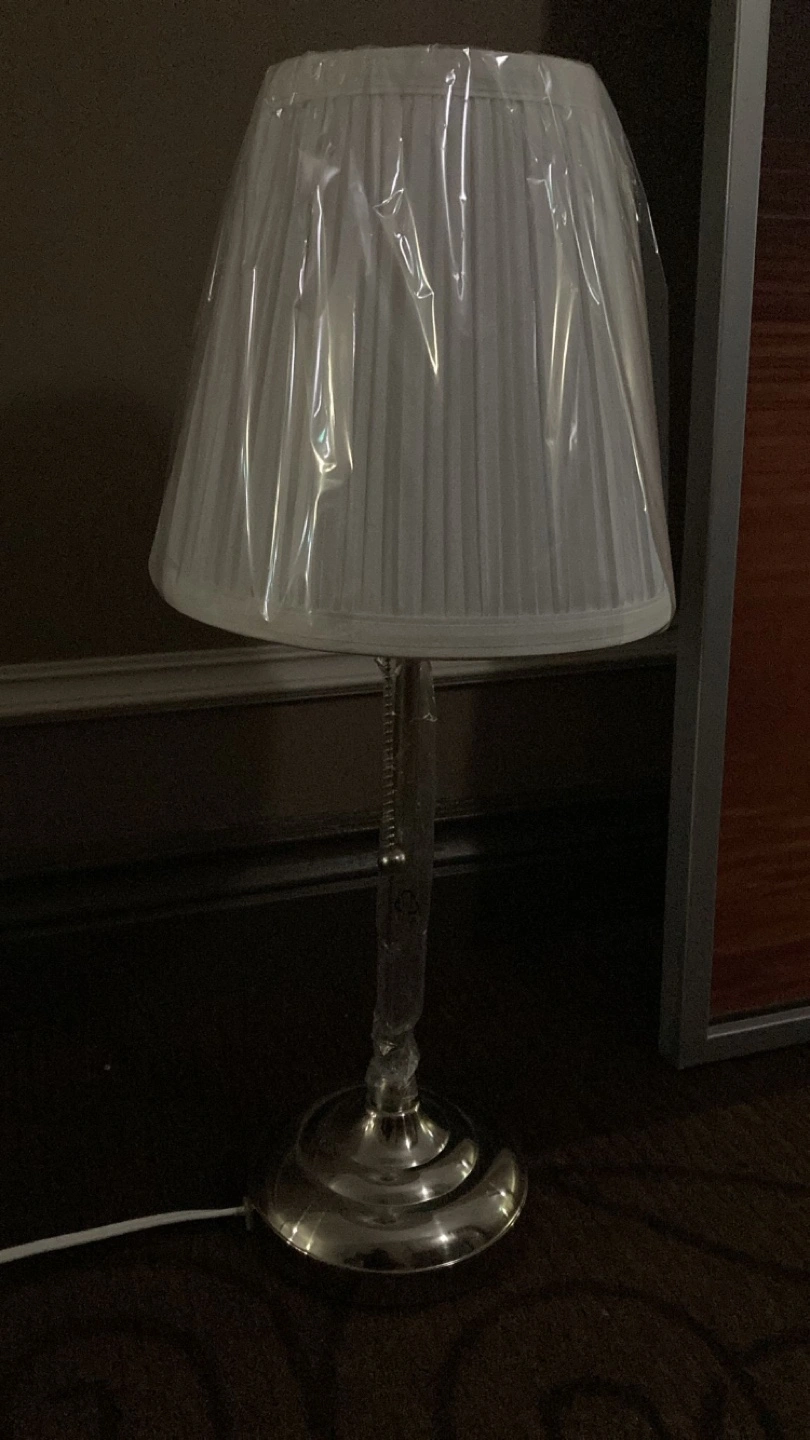 Brand new in the box… I took it out of the box and assembled it but decided not to keep it… still has the plastic on the stem and on the shade.