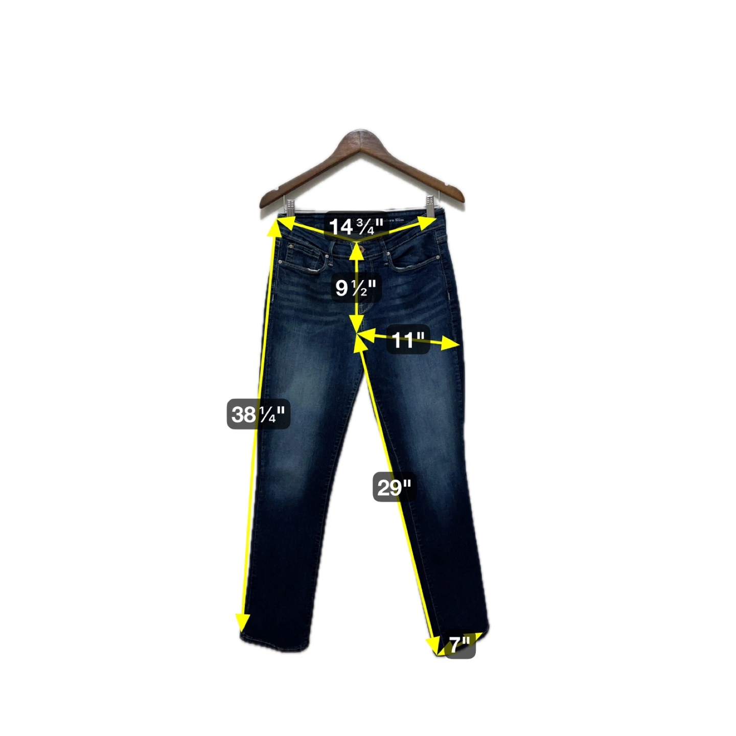 • Brand: Signature by Levi Strauss • Size: Modern Slim (10M 30x32) • Style: Mid-Rise, Slim Fit • Material: 81% Cotton, 17% Polyester, 2% Elastane • Color: Medium Wash Denim • Features: Classic 5-pocket design, button fly closure, machine washable, durable stretch fabric for comfort and fit. Measurements: • Waist Width: 14.75’ • Inseam Length: 29’ • Outseam Length: 38.25’ • Leg Opening Width: 7’ • Thigh Width: 11’ • Front Rise Length: 9.5’