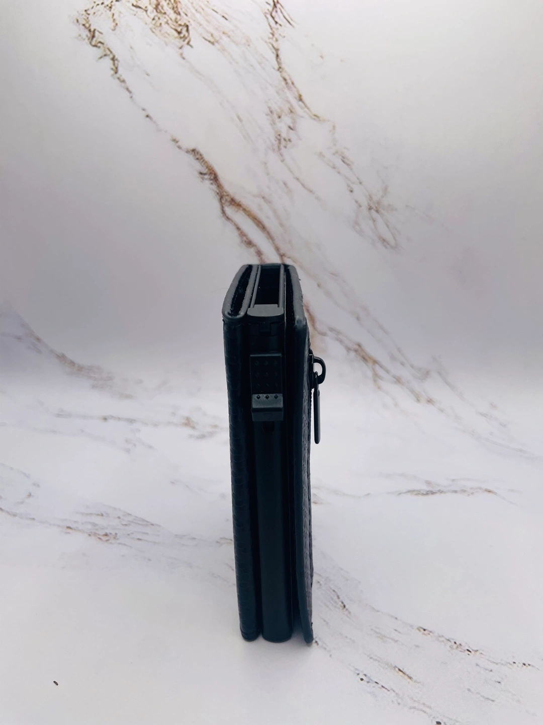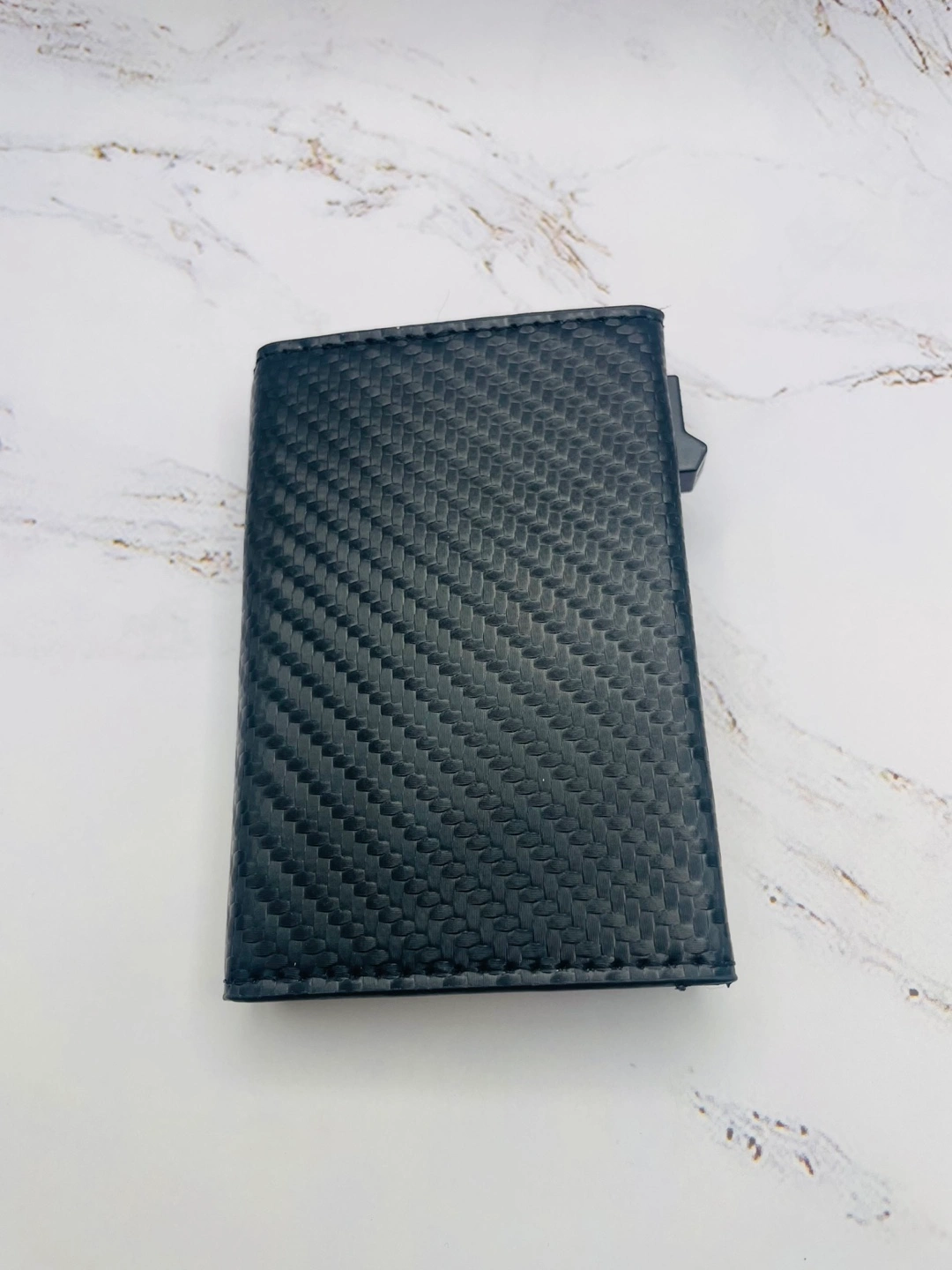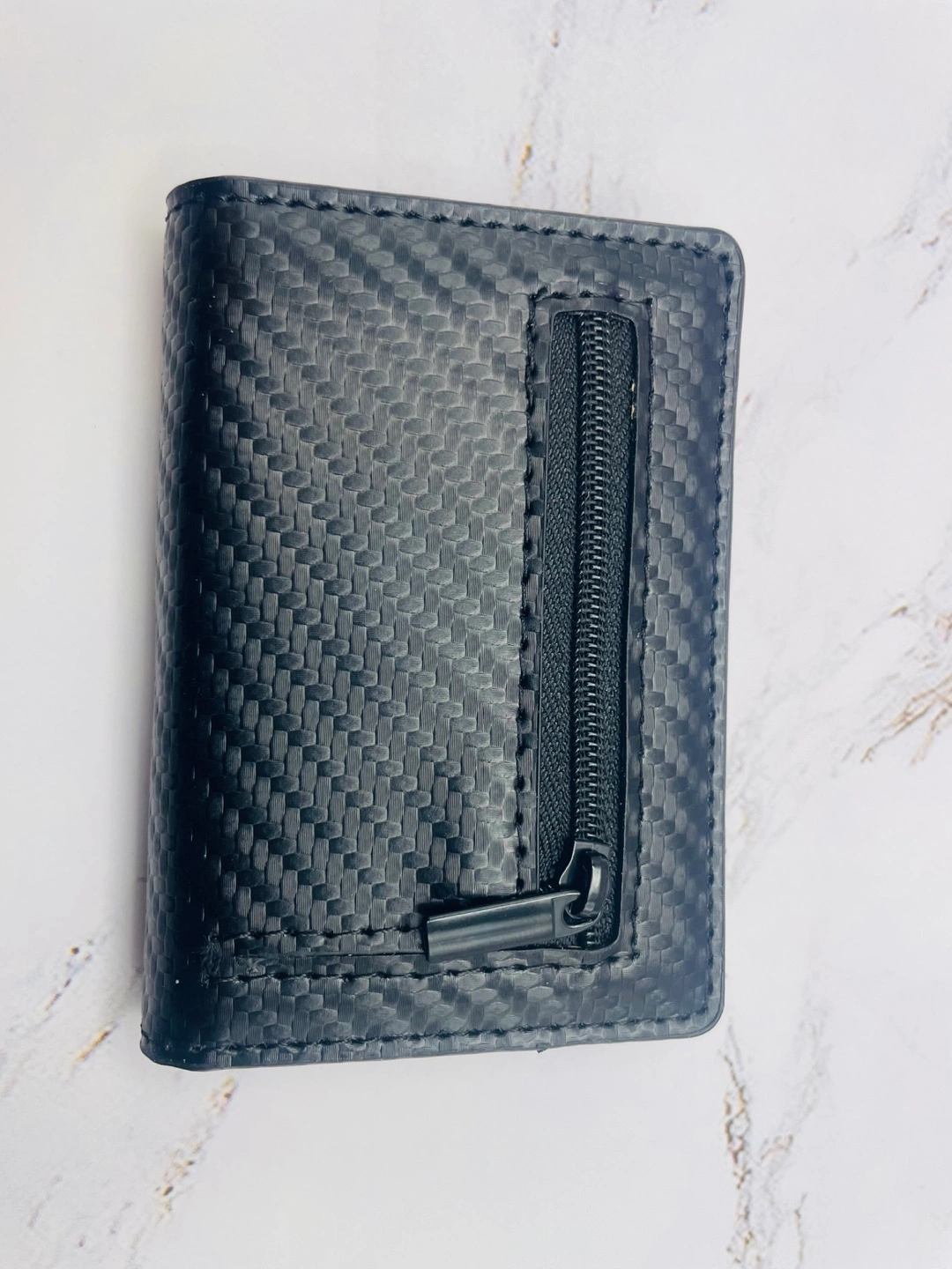 Slim wallet with zippered pocket. Carbon fibre material style.