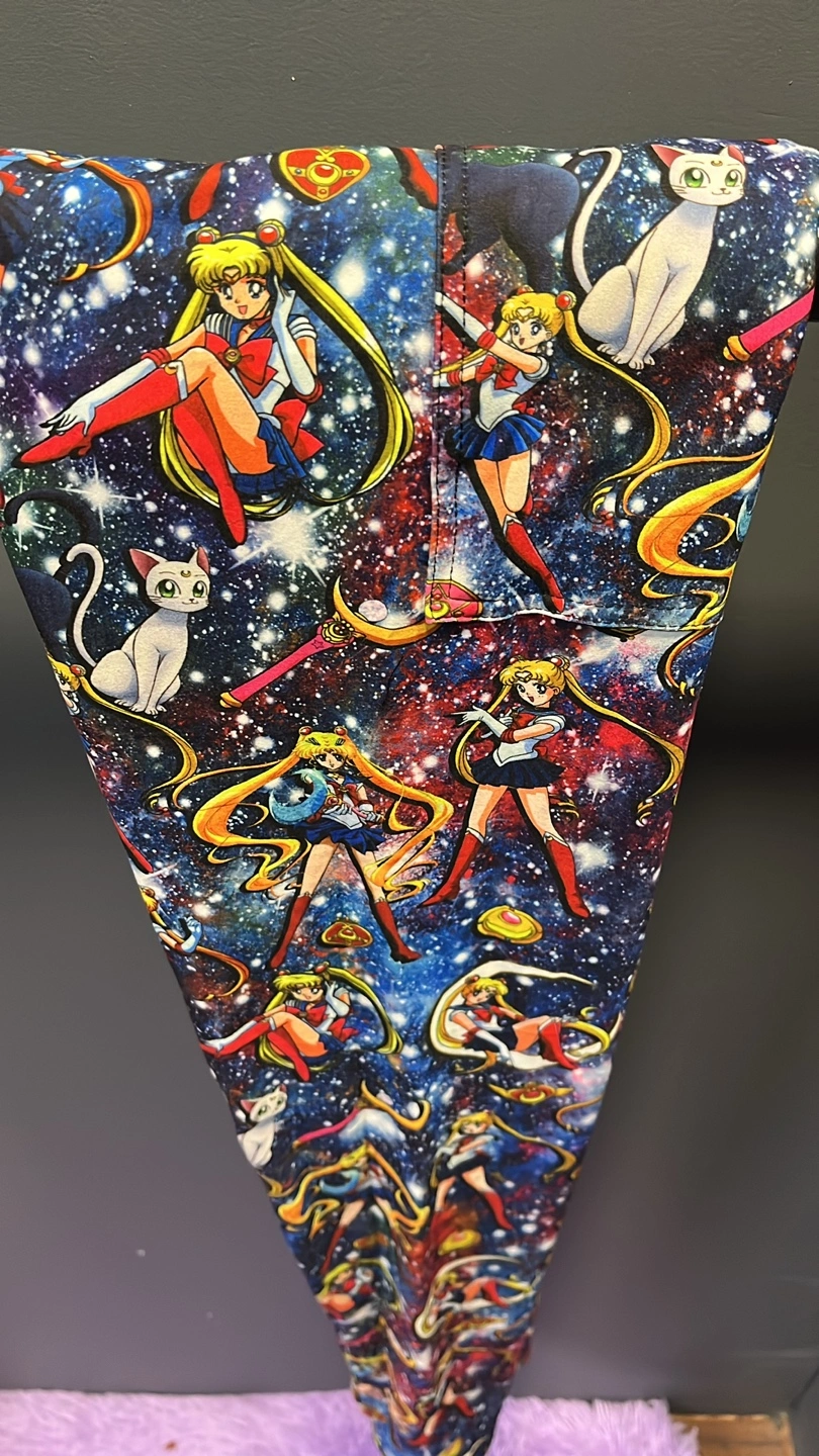 These are a Custom Digital Leggings w/Pockets with a Sailor Moon print. Galaxy background with Sailor Moon and her friends. These are a thicker polyester/spandex blends as images are lasered on, they are double brushed to feel ultra soft and smooth to touch. Prints are Vibrant and sharp images. 2 side pockets for phone, keys, cards ..