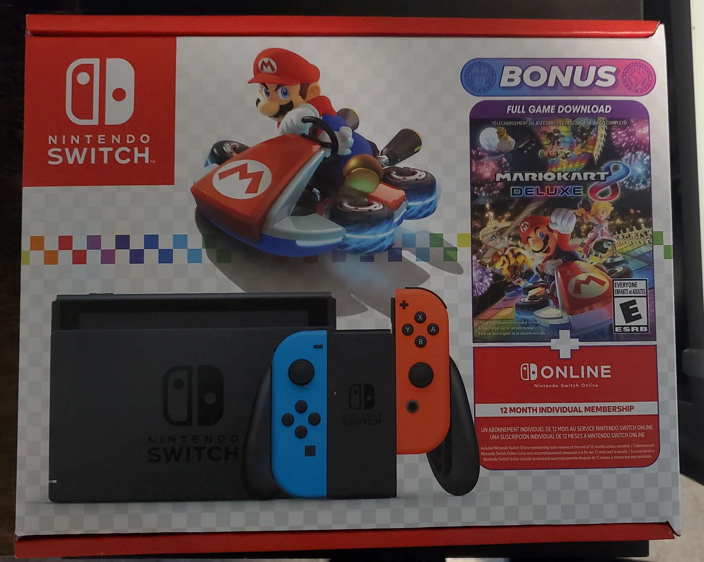 Brand New. Factory Sealed. Nintendo Switch Mario Kart 8 Deluxe Bundle. This bundle has everything you need to start playing right away. Plus, enjoy an added value of $104.98 with full Mario Kart 8 Deluxe game and a 12-month Nintendo Switch Online Individual Membership.