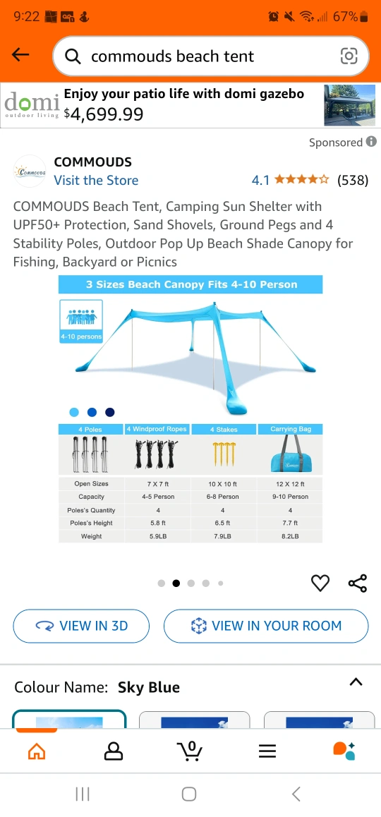 brand new Beach Tent, Camping Sun Shelter with UPF50+ Protection