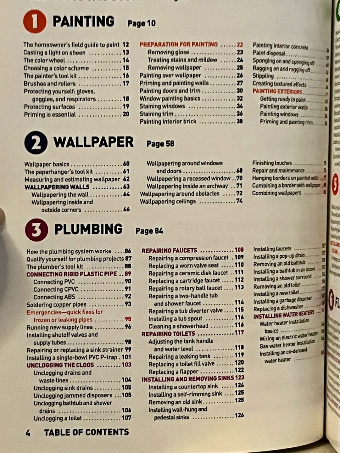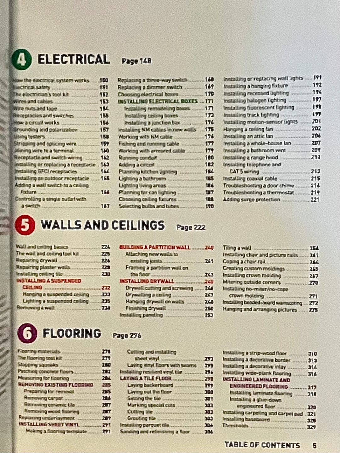 Over 560 pages, 340 projects, 3,500 colour photographs, more than 100 illustrations, charts, and graphs. Easy-to-understand step-by-step instructions. New products, new tools, new technology, new chapter devoted to heating, ventilation, and air-conditioning.