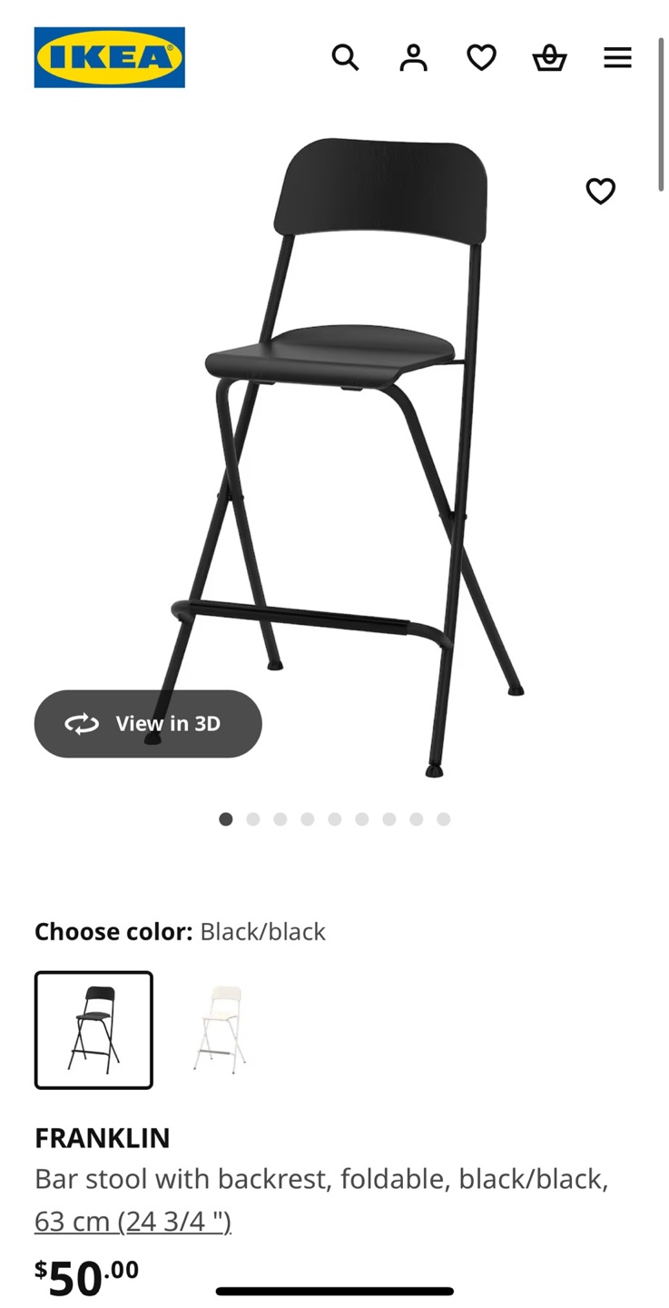 1 / 11 / 1Buy & SellIKEA FRANKLIN Bar StoolIKEA FRANKLIN Bar Stool$20Bar stool with backrest, foldable, black/black, 63 cm (24 3/4").WHERE TO MEETFinch TTC Subway StationView MapSELLERSolarFinch9711 reviews2 chats·3 favorites·65 viewsSEND CHAT TO SELLERHi Solar! I’m interested in your listing.Hi Solar! I’m interested in your listing.Get the Karrot app to chatSign In to chat