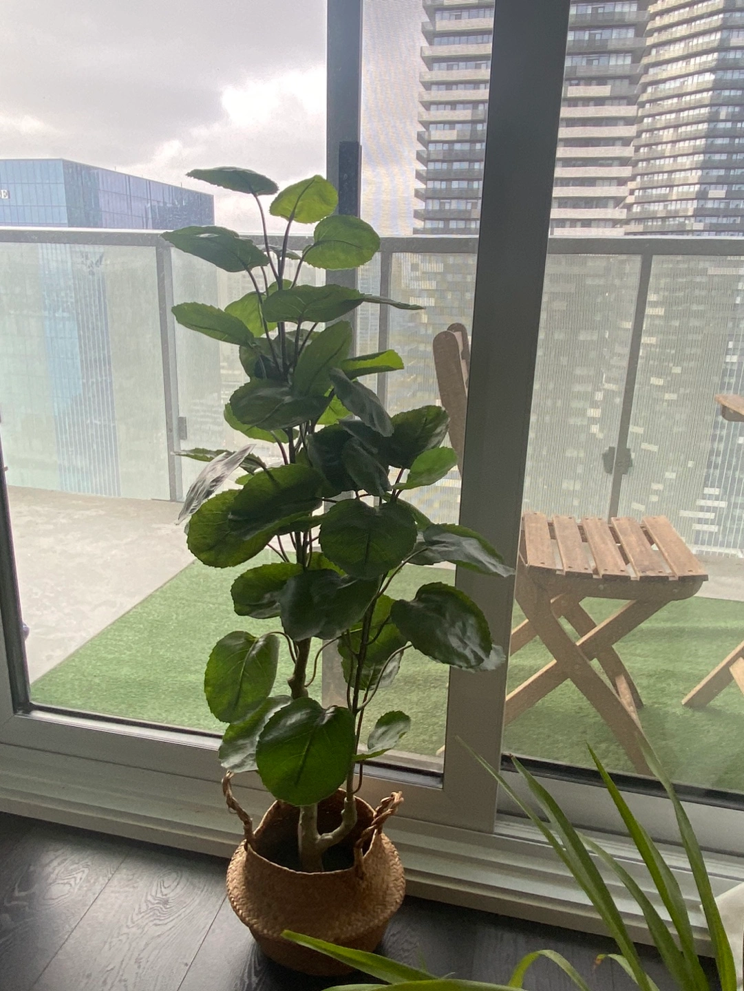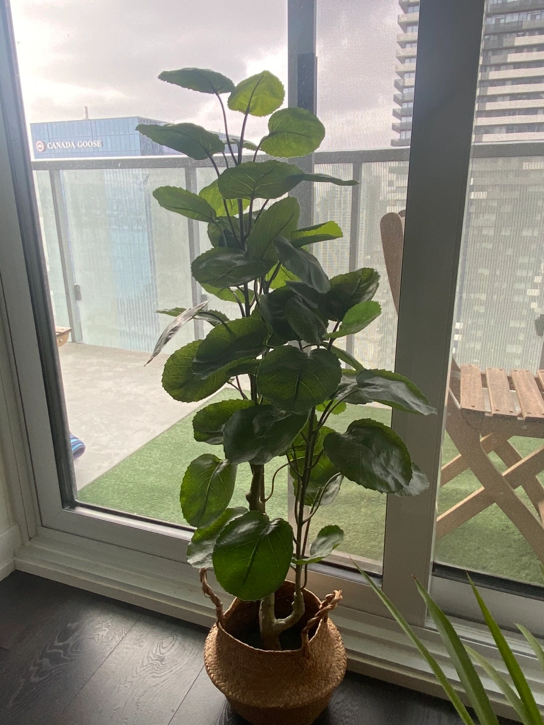 Artificial plant in a woven basket with handles. About 3.6 feet tall.You can easily shape the branches to spread them. Looks very realistic. Pick up-15 lower jarvis