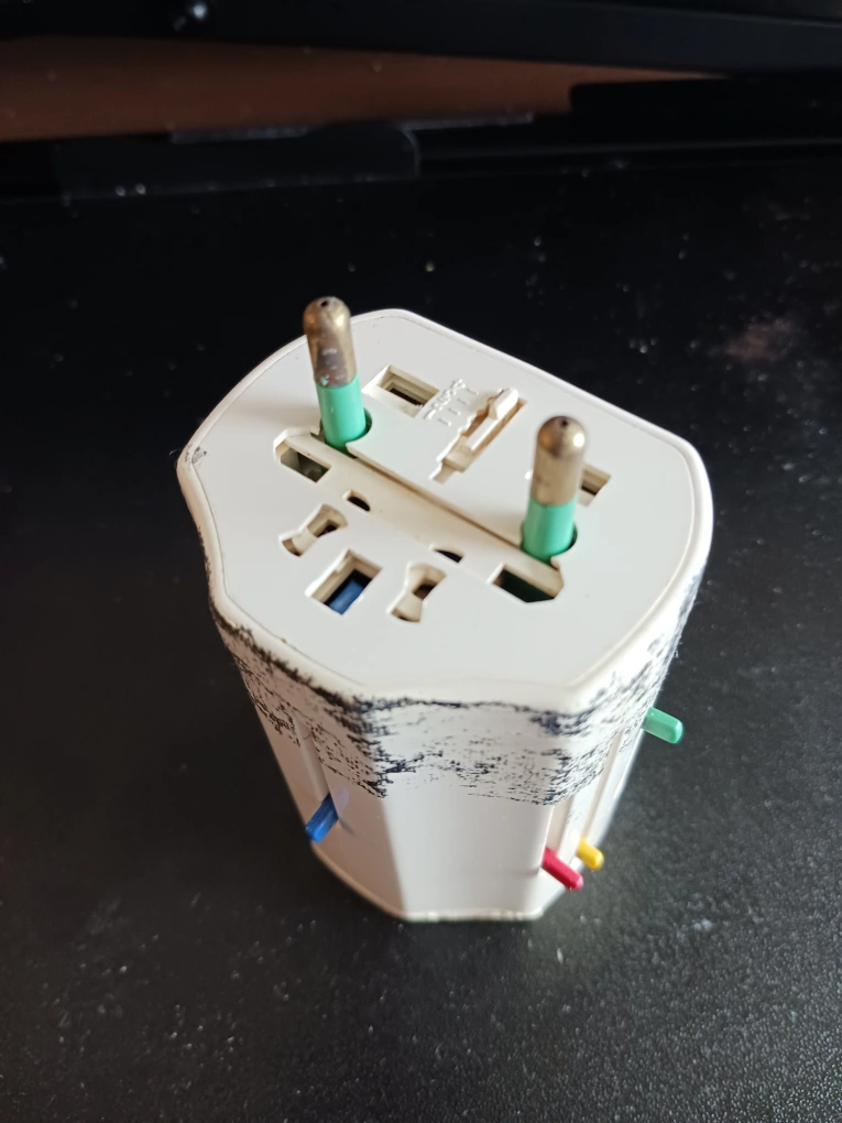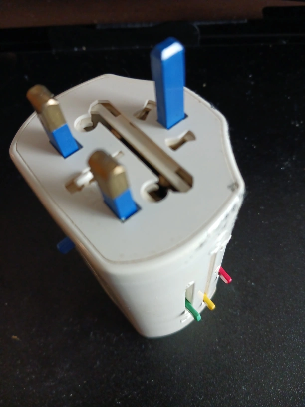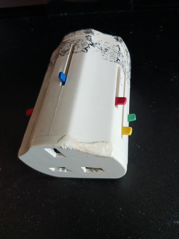 Fully functional Travel electric plug Adaptor, used, with cosmetic damage (duct tape pealed off)