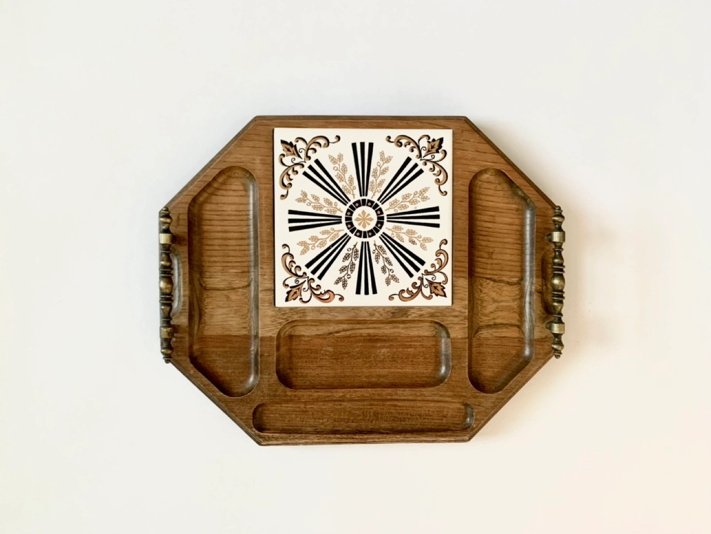 Vintage Octagonal Wood Serving Tray with Tile Insert